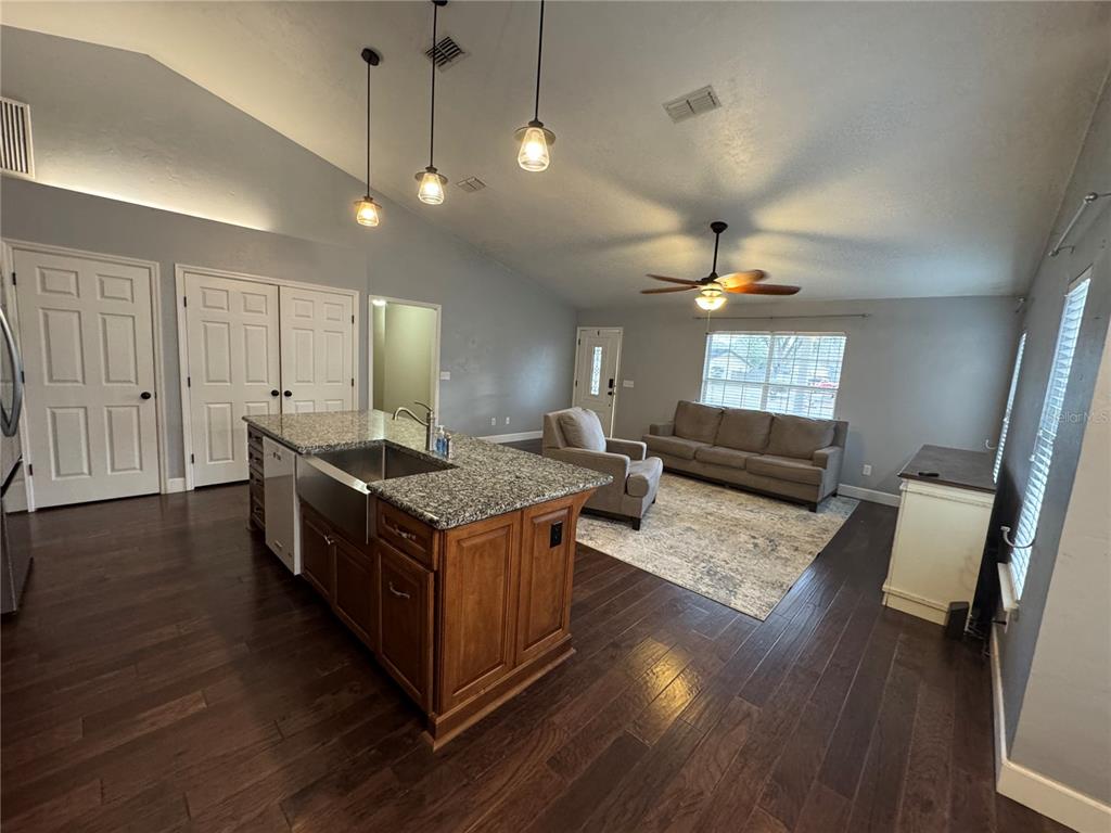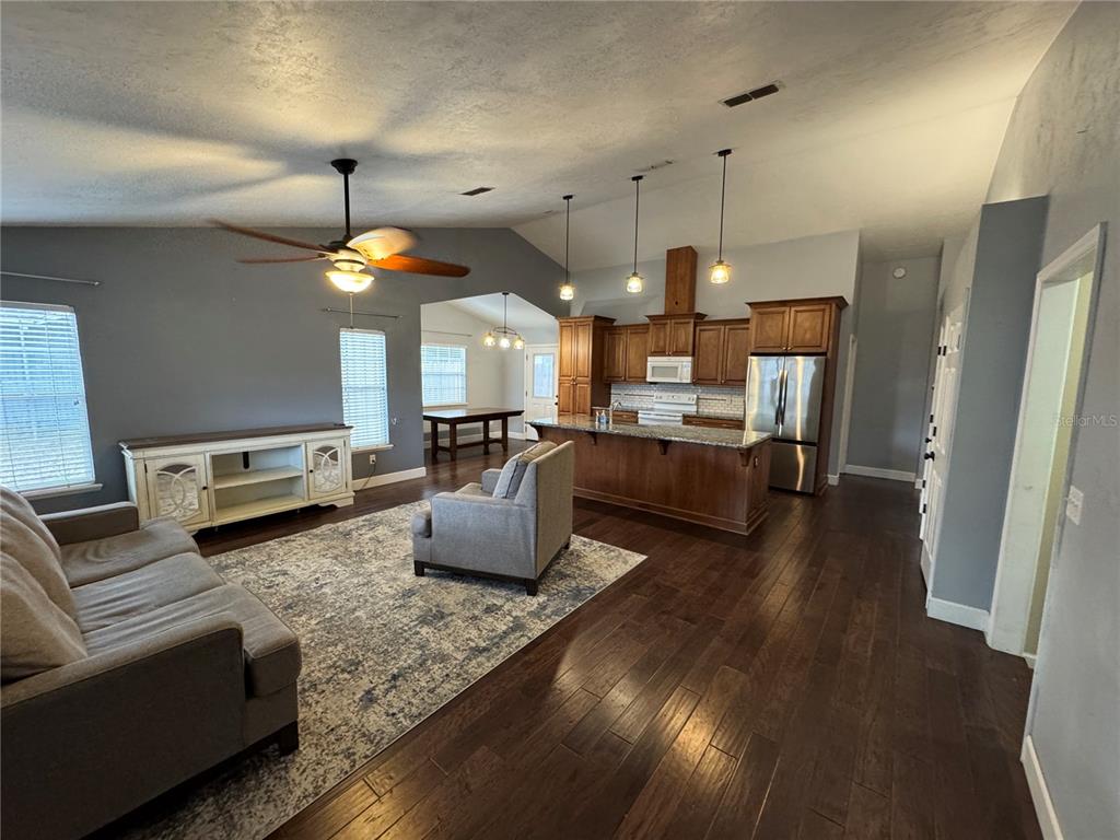 Ceiling Fan(s) Open Floorplan Solid Surface Counters Solid Wood Cabinets Kitchen/Family Room ComboОборудование: