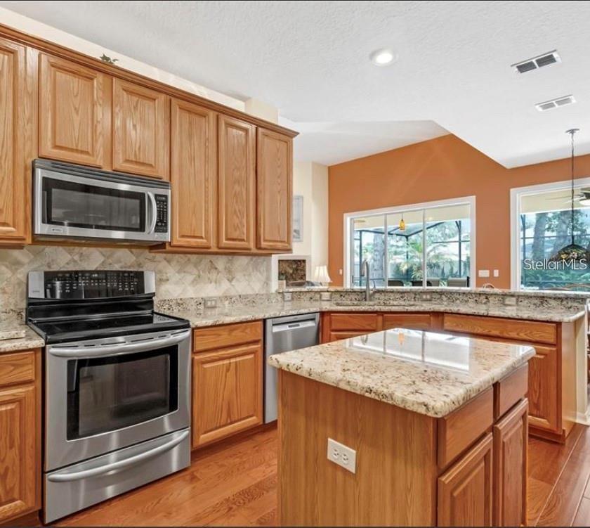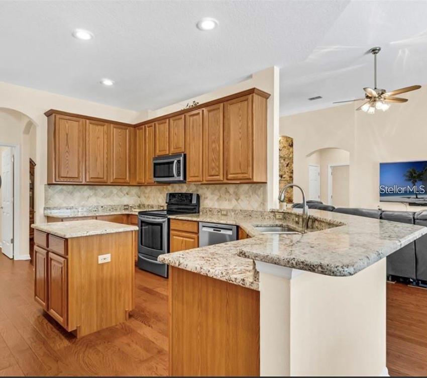 Split Bedroom Other Walk-In Closet(s)Ceiling Fan(s) Eating Space In Kitchen High Ceilings Stone Counters Thermostat Solid Surface Counters Solid Wood Cabinets Primary Bedroom Main Floor Kitchen/Family Room ComboОборудование: