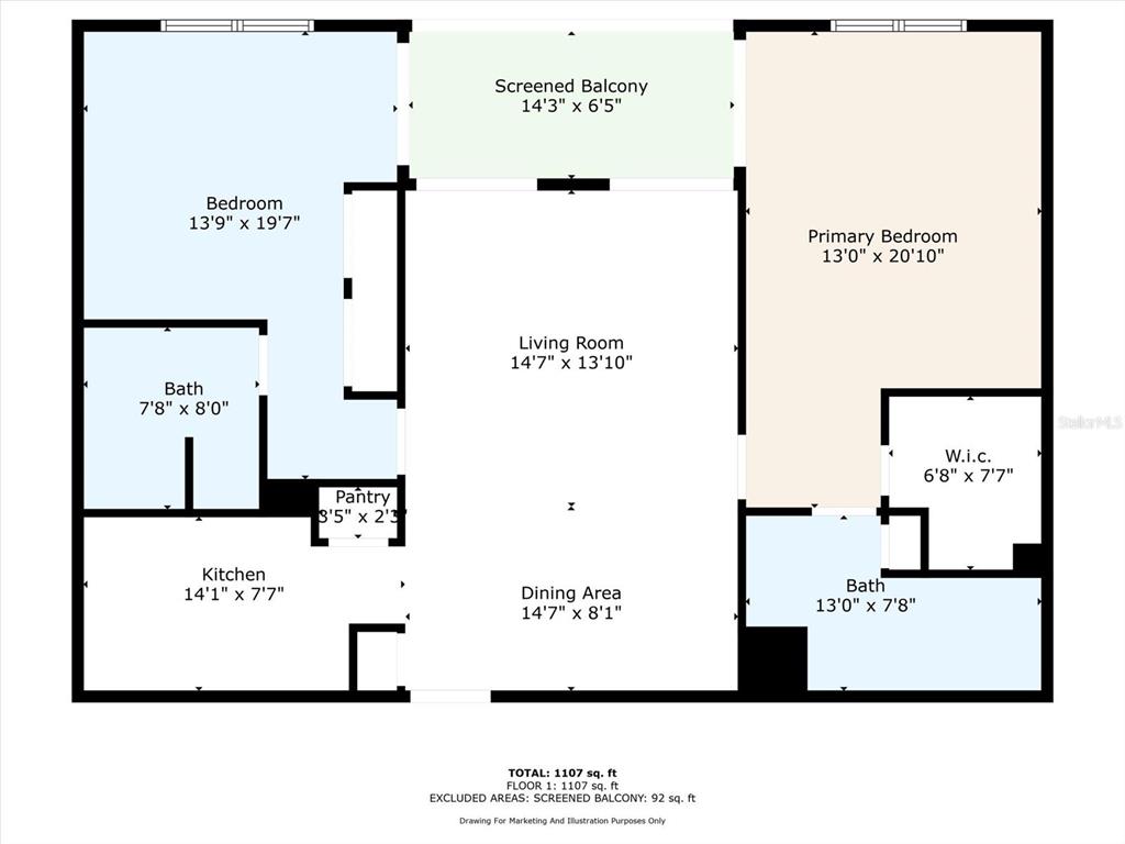 - Living 1100sqft