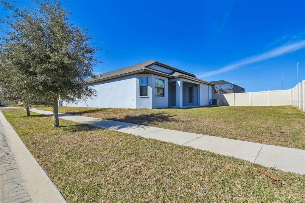 Corner Lot Sidewalk In County Landscaped