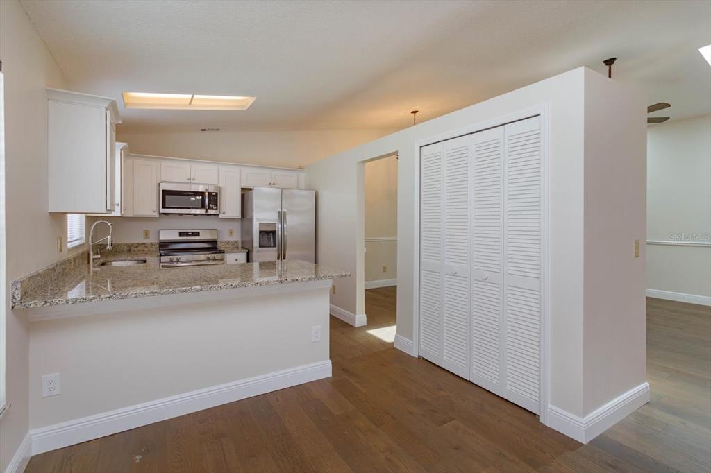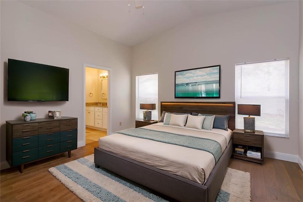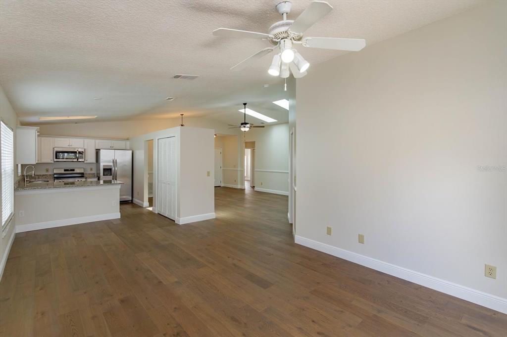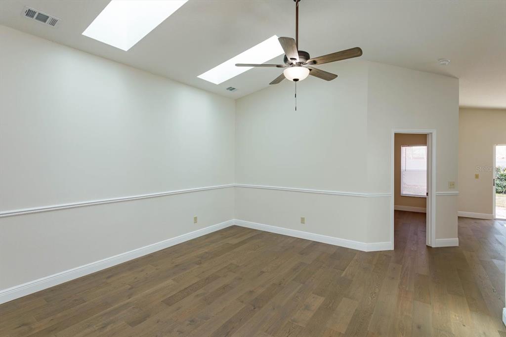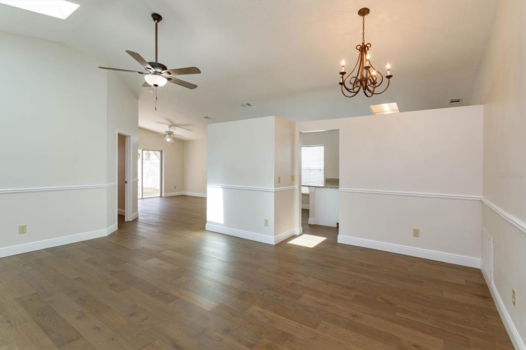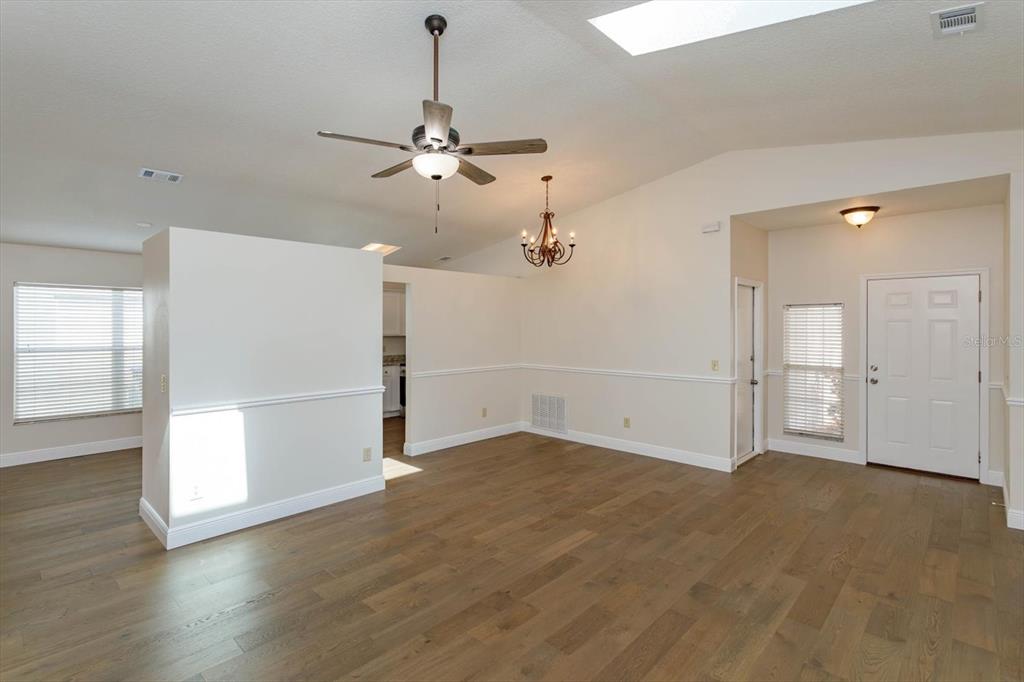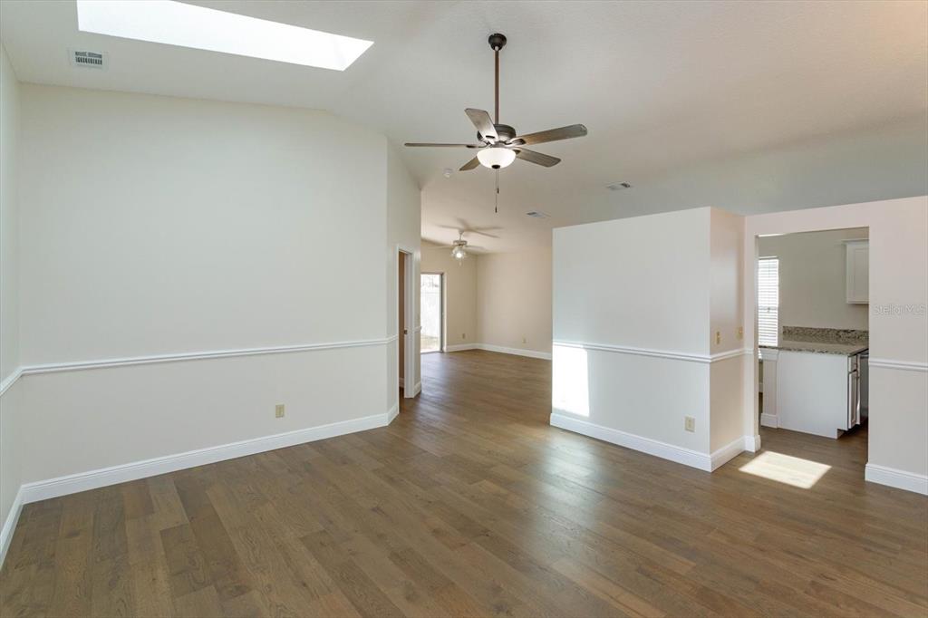 Split Bedroom Walk-In Closet(s) Vaulted Ceiling(s)Ceiling Fan(s) High Ceilings Living Room/Dining Room Combo Thermostat Open Floorplan Window Treatments Solid Surface Counters Primary Bedroom Main Floor Skylight(s) Kitchen/Family Room Combo Chair RailОсобенности экстерьера: