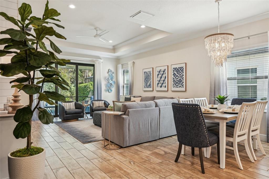 Built-in Features Walk-In Closet(s)Ceiling Fan(s) Eating Space In Kitchen Living Room/Dining Room Combo Stone Counters Open Floorplan Solid Wood CabinetsCrown Molding Primary Bedroom Main Floor Kitchen/Family Room Combo Coffered Ceiling(s) Tray Ceiling(s)Особенности экстерьера: