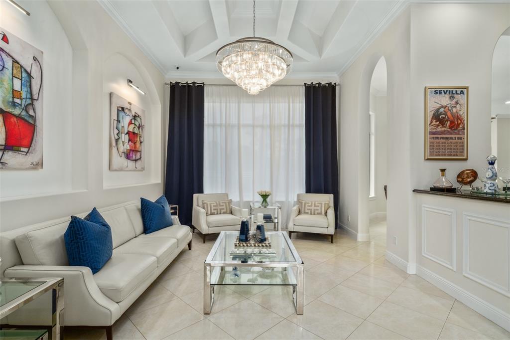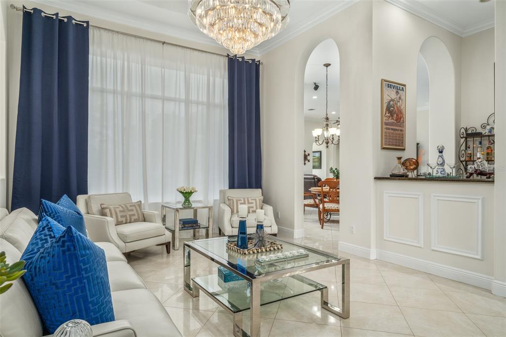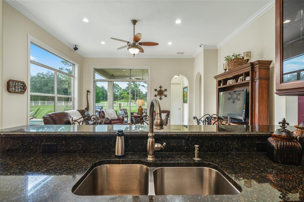Split Bedroom Walk-In Closet(s)Ceiling Fan(s) High Ceilings Stone Counters Open Floorplan Window Treatments Solid Wood CabinetsCrown Molding Coffered Ceiling(s) Tray Ceiling(s) Dry BarОсобенности экстерьера: