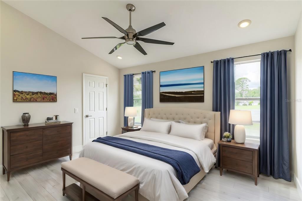 Walk-In Closet(s)Ceiling Fan(s) High Ceilings Stone Counters Thermostat Open Floorplan Solid Wood CabinetsCrown Molding Primary Bedroom Main FloorCathedral Ceiling(s)Особенности экстерьера: