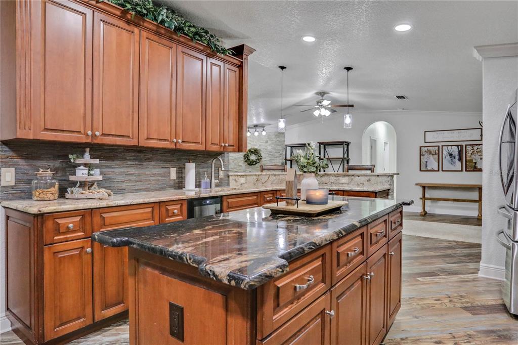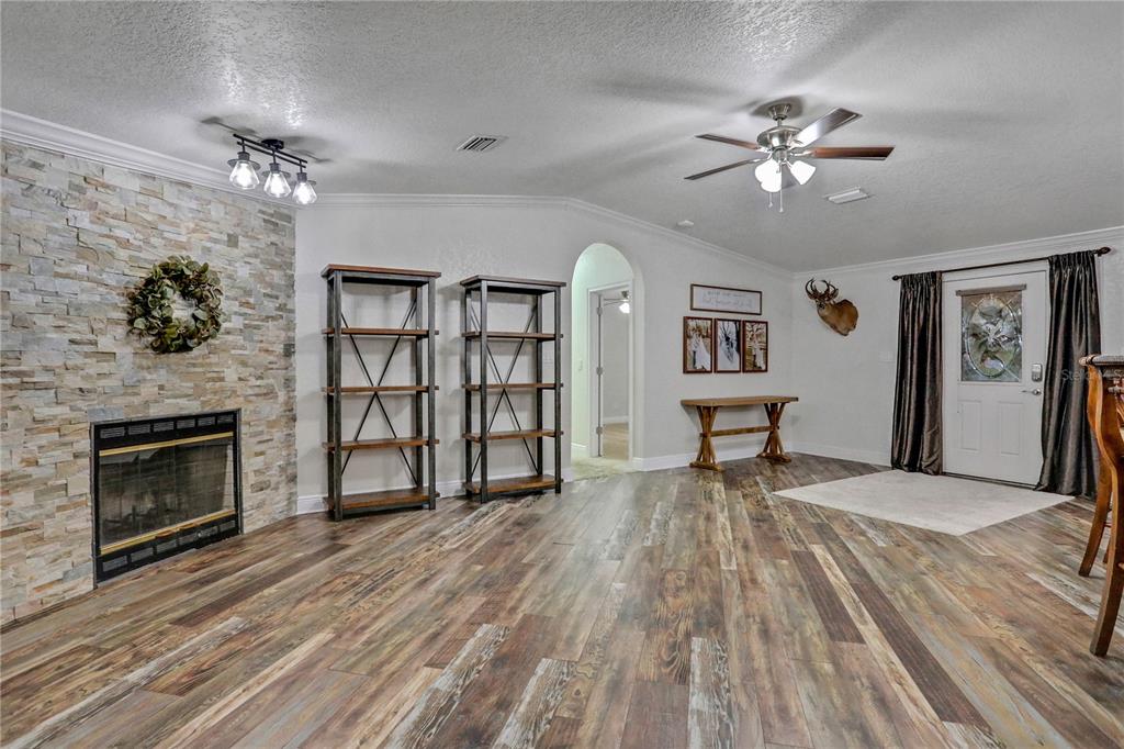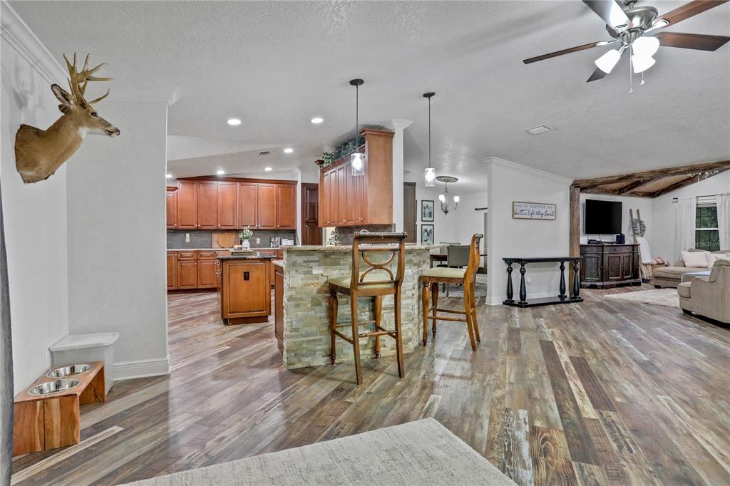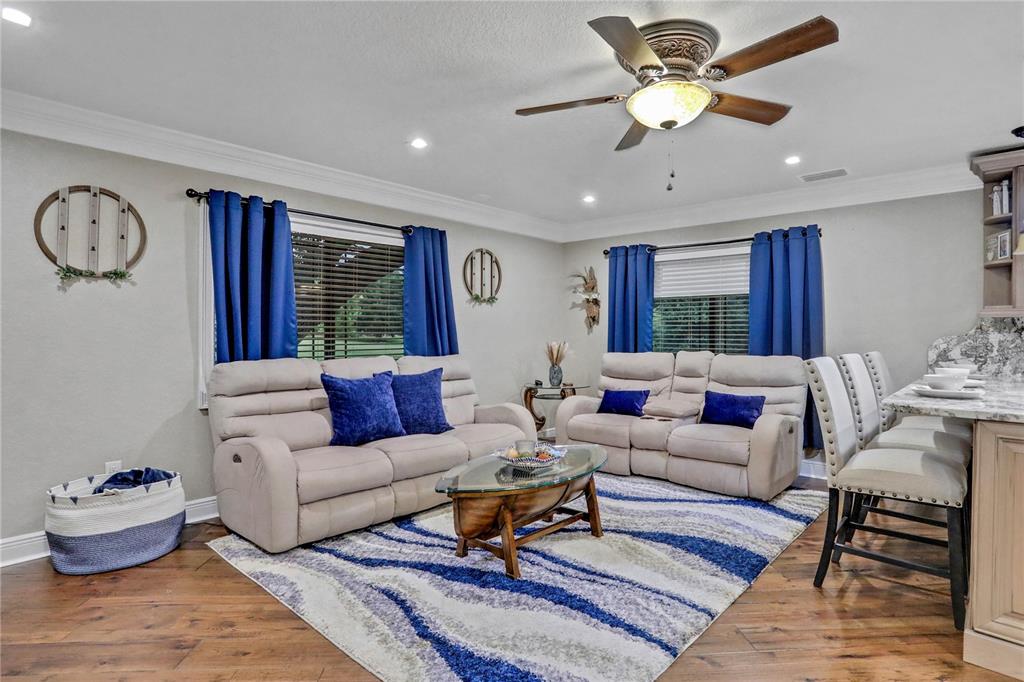 Built-in Features Walk-In Closet(s)Ceiling Fan(s) High Ceilings Stone Counters Open Floorplan Window TreatmentsCrown Molding Kitchen/Family Room ComboОсобенности экстерьера:
