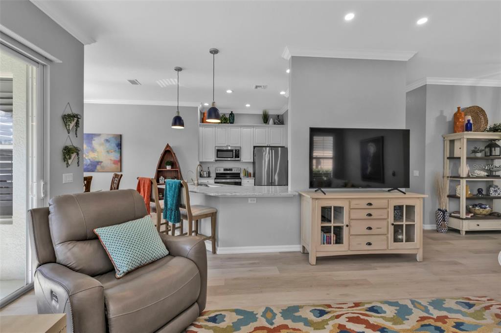 Ceiling Fan(s) Eating Space In Kitchen Stone Counters Open Floorplan Window TreatmentsCrown MoldingОсобенности экстерьера: