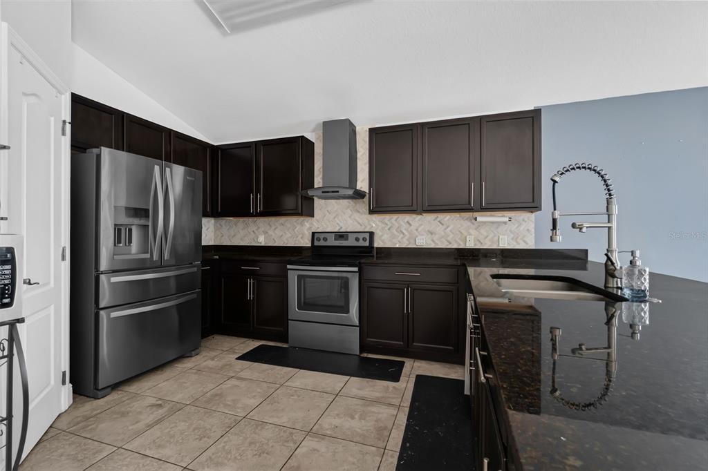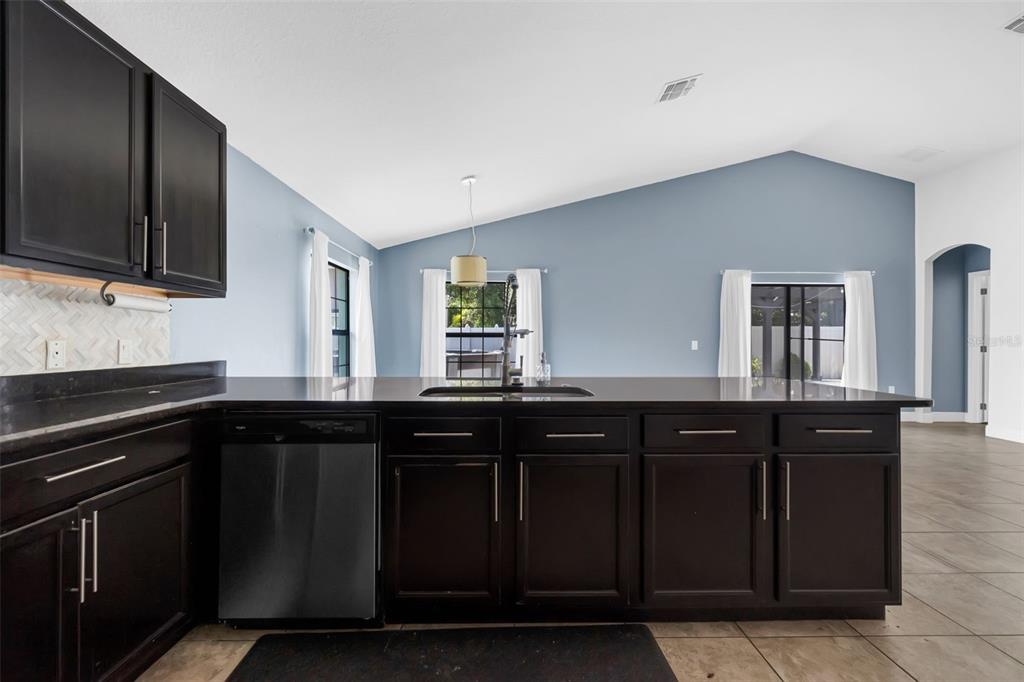 Split Bedroom Walk-In Closet(s) Vaulted Ceiling(s) High Ceilings Stone Counters Open Floorplan Solid Surface Counters Solid Wood Cabinets Primary Bedroom Main Floor L DiningОсобенности экстерьера: