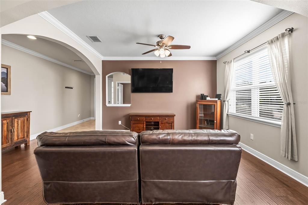 Split Bedroom Walk-In Closet(s)Ceiling Fan(s) Eating Space In Kitchen Living Room/Dining Room Combo Thermostat Open Floorplan Window Treatments Solid Surface CountersCrown Molding Primary Bedroom Main Floor Kitchen/Family Room ComboОсобенности экстерьера: