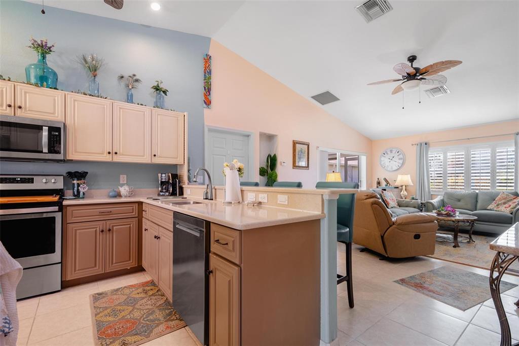 Vaulted Ceiling(s) Eating Space In Kitchen High Ceilings Thermostat Open Floorplan Window Treatments Solid Surface Counters Solid Wood Cabinets Kitchen/Family Room ComboОсобенности экстерьера: