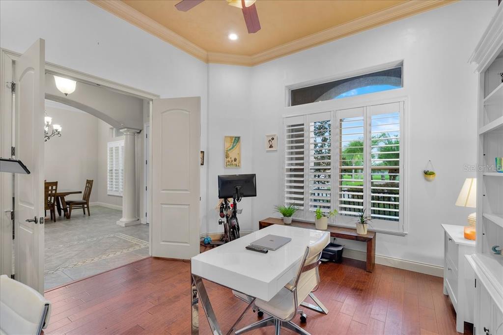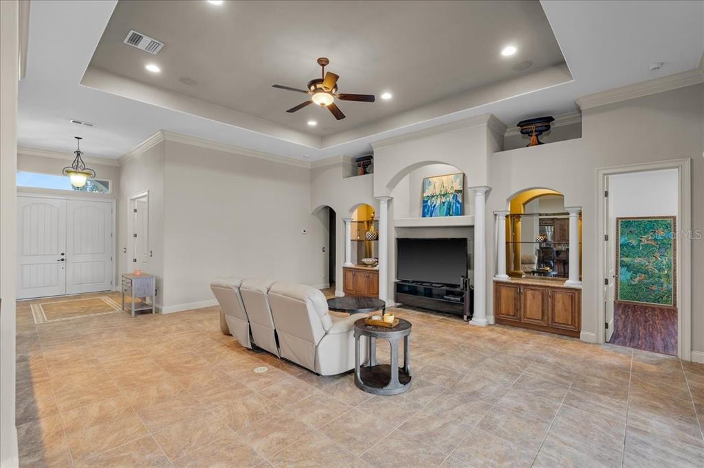 Wet Bar Walk-In Closet(s)Ceiling Fan(s) High Ceilings Thermostat Open Floorplan Solid Surface Counters Solid Wood CabinetsCrown Molding Primary Bedroom Main Floor Tray Ceiling(s)Особенности экстерьера: