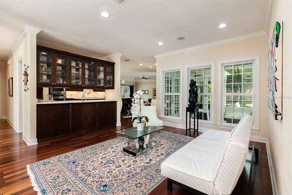 Split BedroomWet Bar Walk-In Closet(s)Ceiling Fan(s) High Ceilings Stone Counters Open Floorplan Window Treatments Solid Wood CabinetsCrown Molding Primary Bedroom Main Floor Kitchen/Family Room ComboОсобенности экстерьера: