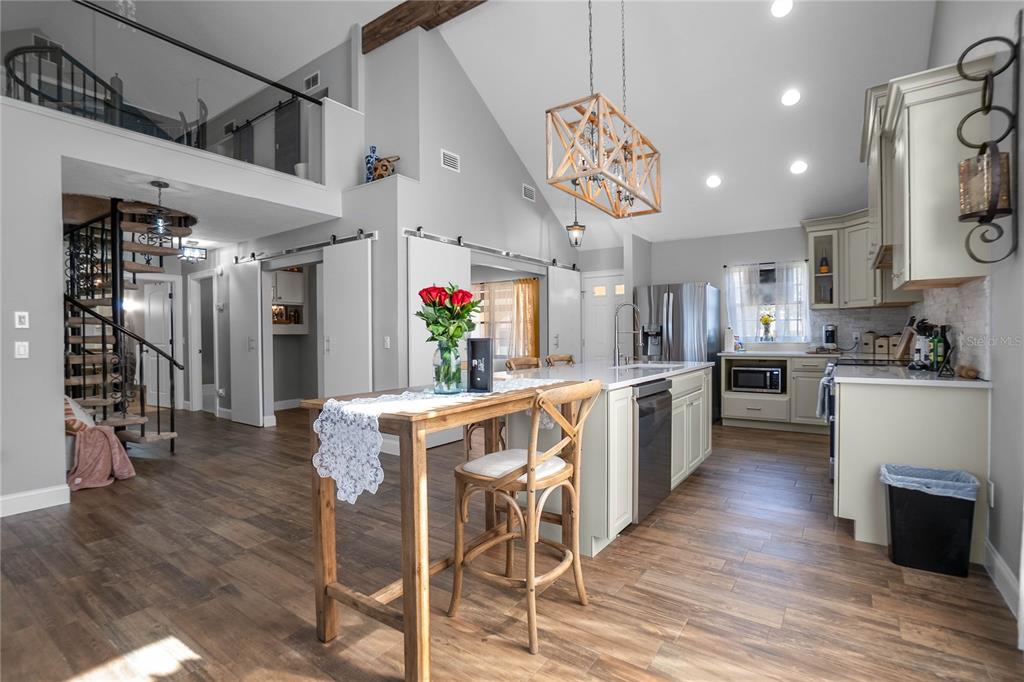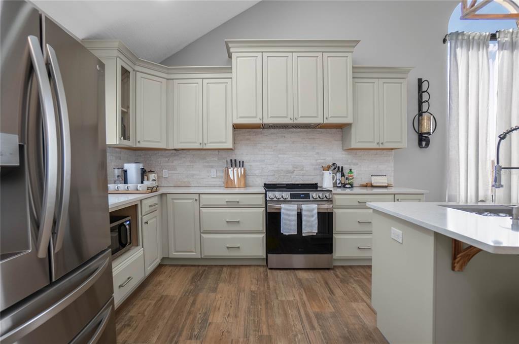 Vaulted Ceiling(s)Ceiling Fan(s) High Ceilings Open Floorplan Solid Surface Counters Solid Wood Cabinets Primary Bedroom Main Floor Kitchen/Family Room ComboОсобенности экстерьера: