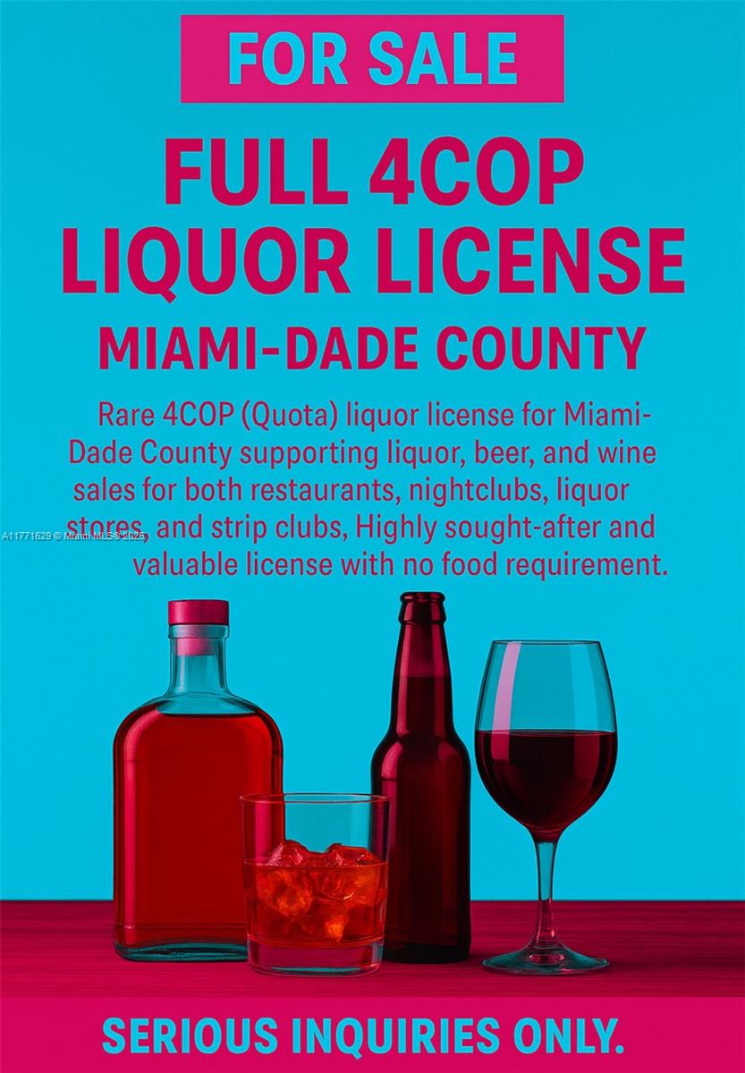 4 FULL QUOTA LIQUOR LICENSE, MIAMI, FL 33139Цена$245,000