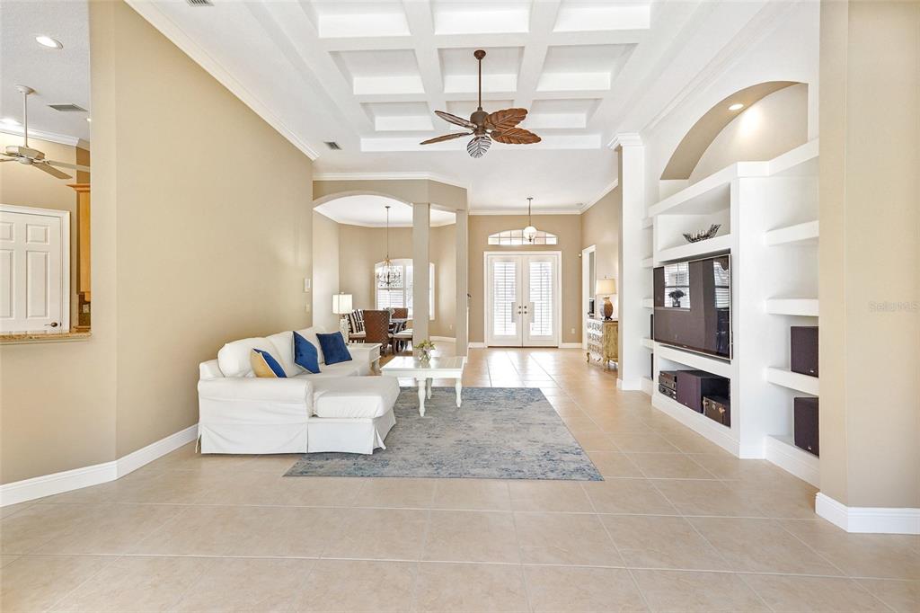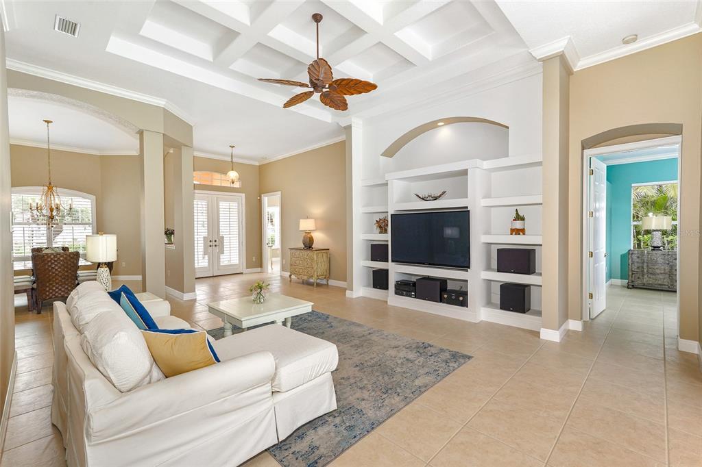 Split Bedroom Walk-In Closet(s)Ceiling Fan(s) Eating Space In Kitchen High Ceilings Stone Counters Open Floorplan Solid Surface Counters Solid Wood CabinetsCrown Molding Primary Bedroom Main Floor Coffered Ceiling(s) Tray Ceiling(s) Central Vacuum Chair RailОсобенности экстерьера:
