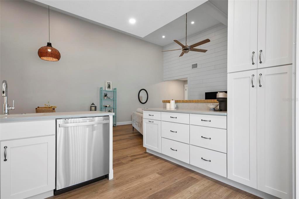 Split BedroomBuilt-in Features Vaulted Ceiling(s)Ceiling Fan(s) High Ceilings Living Room/Dining Room Combo Stone Counters Thermostat Open Floorplan Window Treatments Solid Surface Counters Primary Bedroom Main Floor Kitchen/Family Room ComboОсобенности экстерьера: