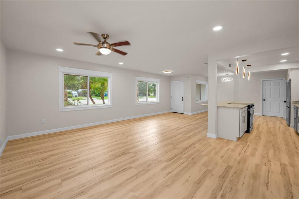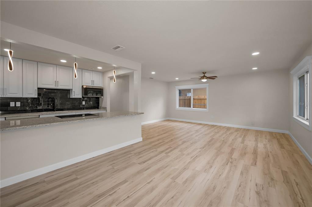Ceiling Fan(s) Eating Space In Kitchen Living Room/Dining Room Combo Stone CountersОсобенности экстерьера: