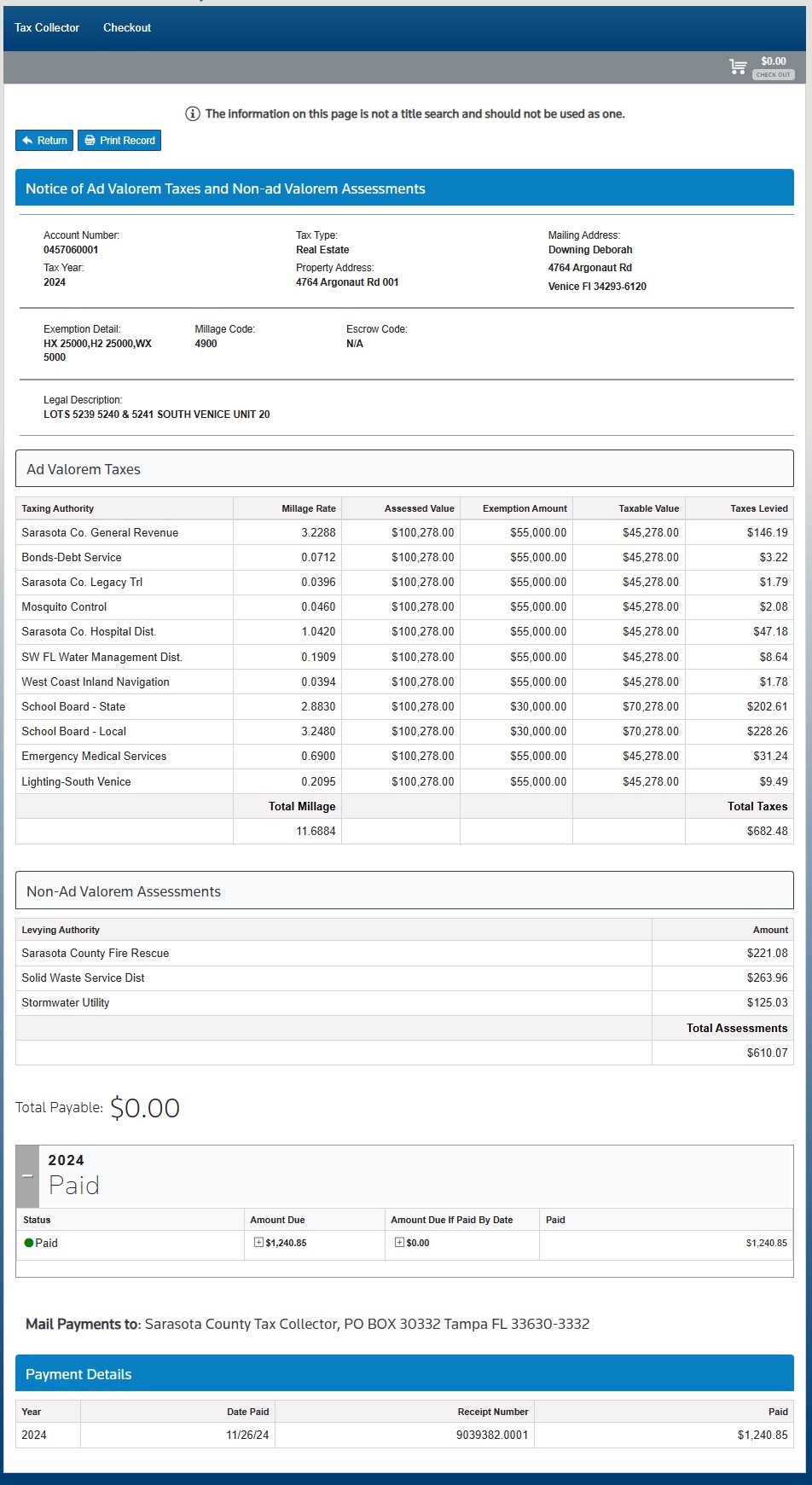 LOTS 5239 5240 & 5241 SOUTH VENICE UNIT 20Tax Year: