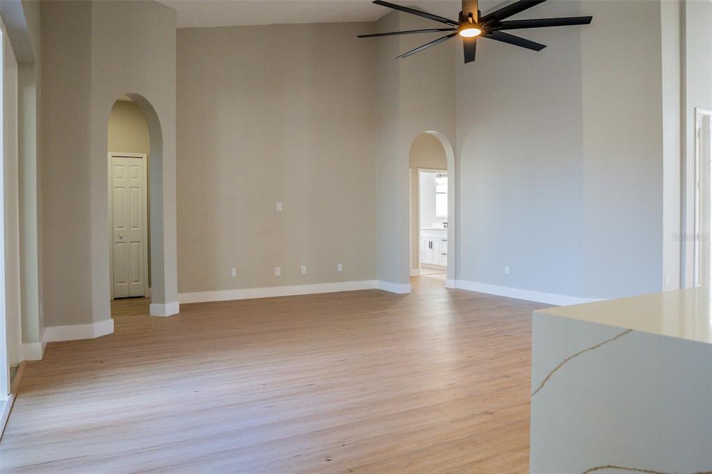 Split Bedroom Walk-In Closet(s) Vaulted Ceiling(s)Ceiling Fan(s) Eating Space In Kitchen High Ceilings Open Floorplan Window Treatments Solid Wood CabinetsCrown Molding Primary Bedroom Main FloorCathedral Ceiling(s)Особенности экстерьера: