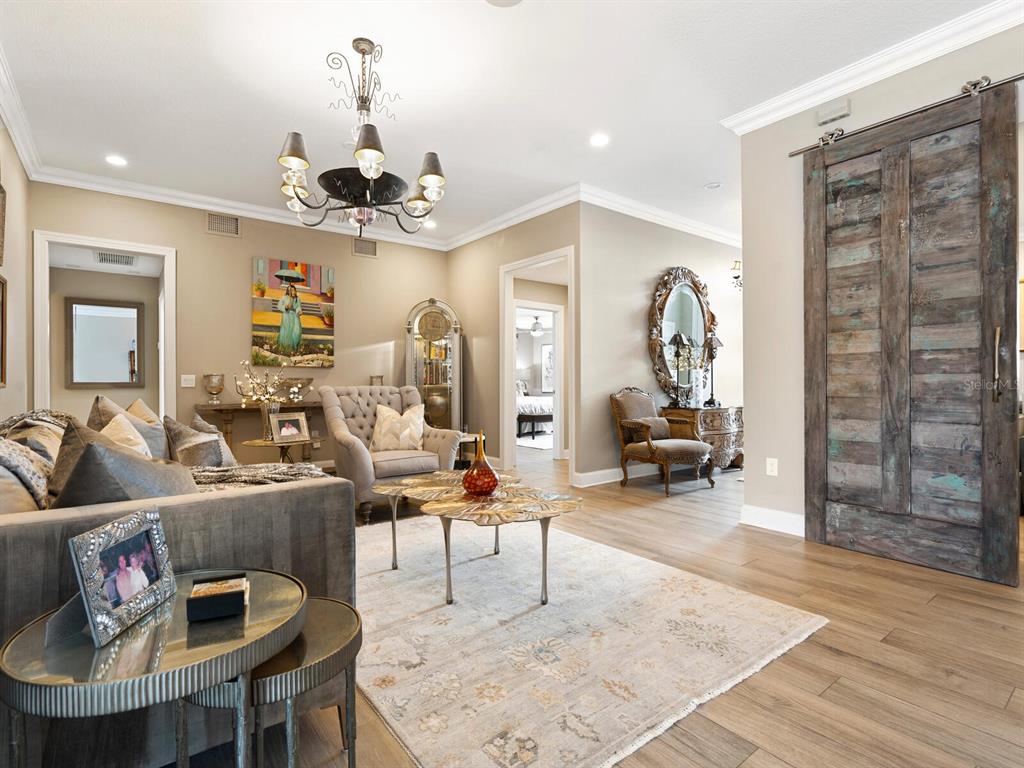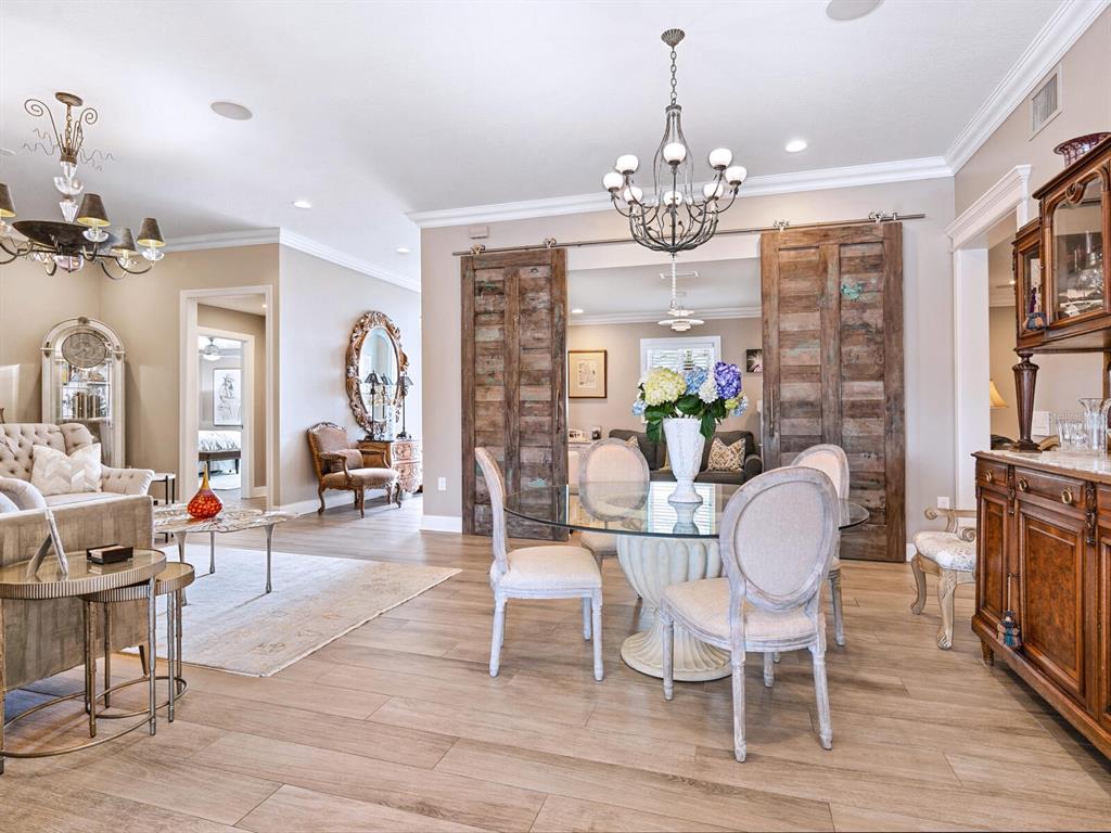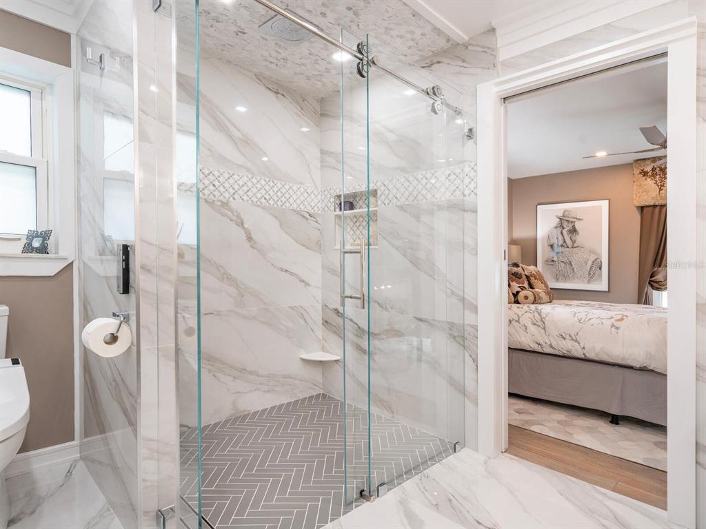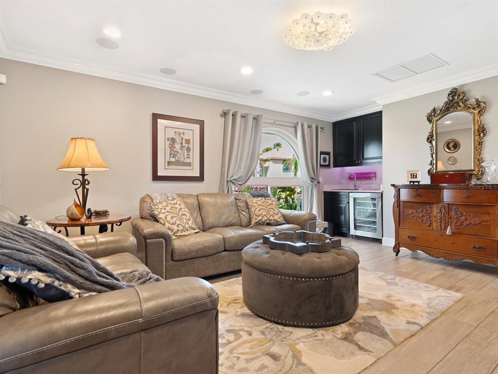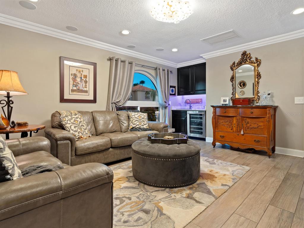 Split BedroomWet Bar Walk-In Closet(s) SaunaCeiling Fan(s) Eating Space In Kitchen High Ceilings Living Room/Dining Room Combo Stone Counters Thermostat Open Floorplan Window Treatments Solid Wood CabinetsCrown Molding Primary Bedroom Main Floor Smart HomeОсобенности экстерьера: