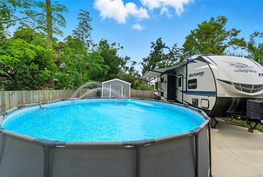 Driveway Covered Ground Level RV Parking Pool Features:
