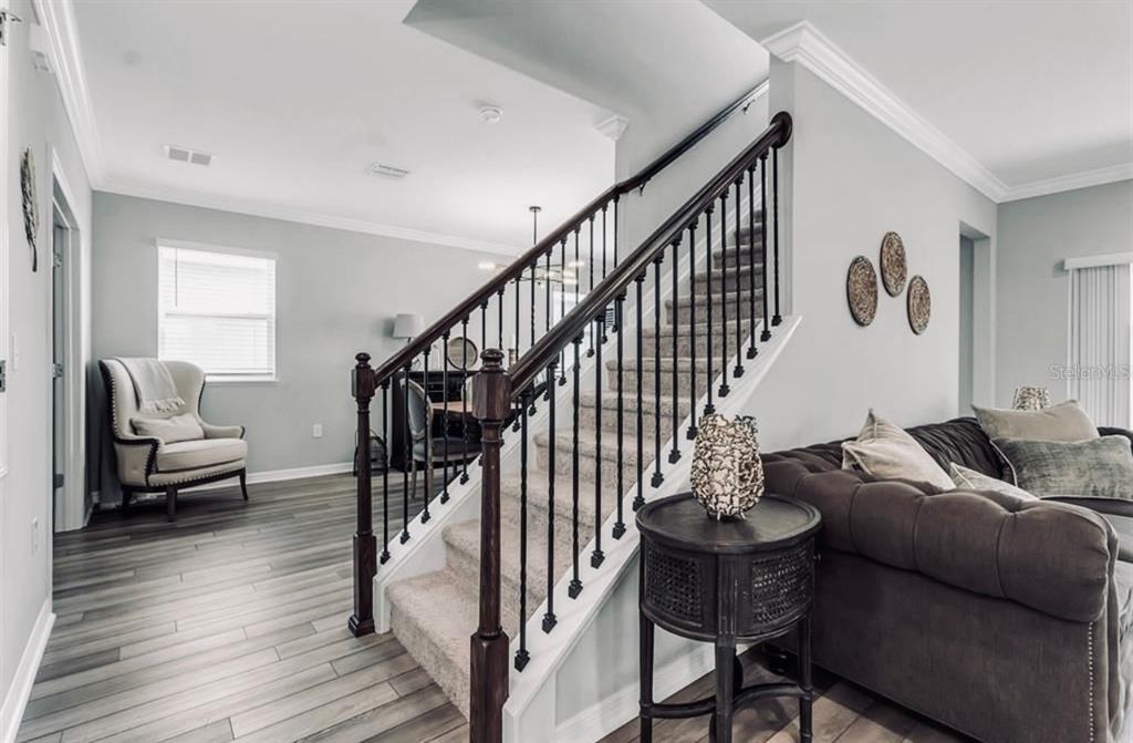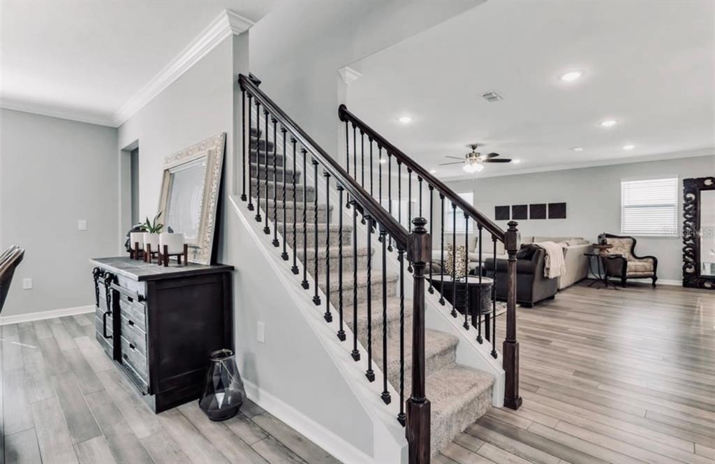 Split Bedroom Walk-In Closet(s)Ceiling Fan(s) High CeilingsCrown Molding Kitchen/Family Room Combo PrimaryBedroom UpstairsОсобенности экстерьера: