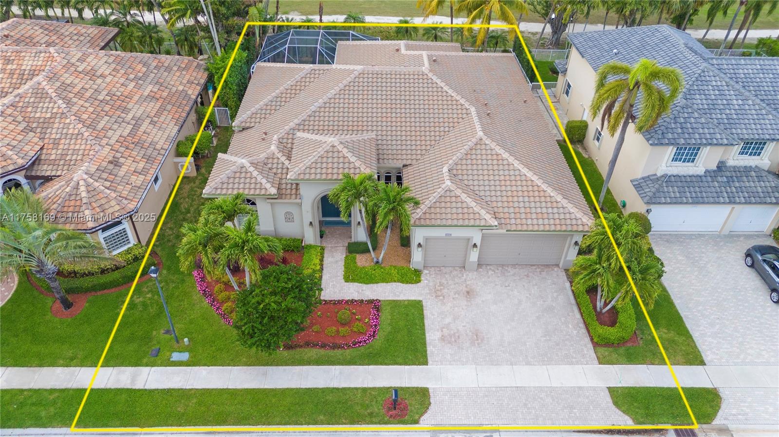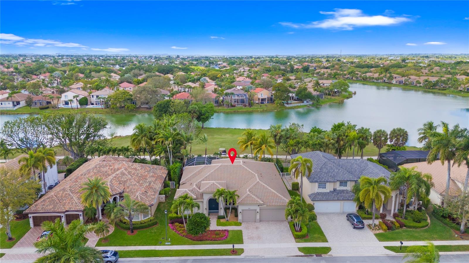 Luxurious estate home located in san paolo at grand palms, this beautiful home offers a triple split floor plan with three suites, each with its own bath and walk-in closet, located on the golf course, the home has a screened heated pool with spa, whole-house generac generator, impact windows (not on the two glass block), and a brand new roof installed in 2024. updated kitchen, marble floors, real & engineered wood floors, spacious rooms, closet built-ins, plantation shutters, adt alarm system included in hoa fees, 3 car garage with built-ins, all located in a desirable guard gated community close to 75.1458 SW 157TH AVE, PEMBROKE PINES, FL 33027