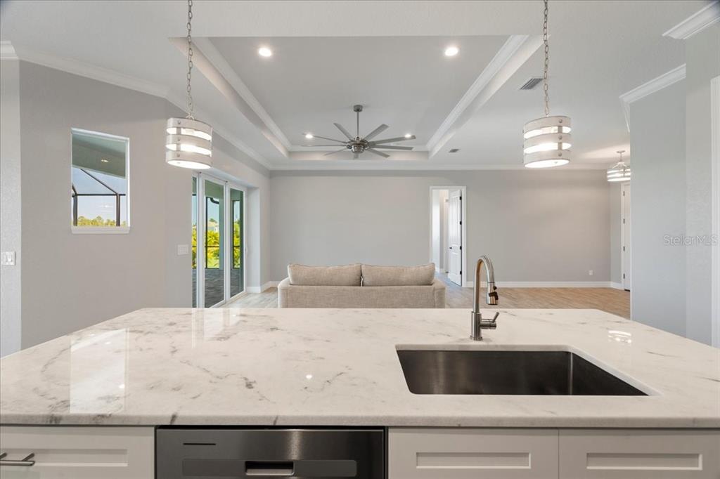 Under construction. 45 days till completion. paradise is not just a catchphrase here as there isn’t another home that refreshes your mind and soul more at this price point, so come and spoil yourself with this 3 bedroom plus an office property! enjoy every room in the rear of your home having a sliding glass door to pour in the sunshine, bringing the outdoors inside. step into soaring ceilings throughout that open your senses to living in castle-like luxury, especially having 8’ doors at every opening. be pampered with high end granite and soft closing solid wood cabinetry in your kitchen, bathrooms, and laundry room. why stop there when you can have yourself two kitchen pantries, tile backsplash, range hood, crown molding, allergen-free porcelain tile flooring, three walk-in closets, three linen closets, and two sprayer heads with individual control valves in the primary's bathroom? providing the utmost discretion with a split floor plan, the home also boasts amazing entertainment space with its open concept. the 2.5 car garage has volume ceilings which allows for overhead rack storage. there’s 3 of these incredible properties available, all in differing color schemes, with one that's move-in ready, one 30 days out, one on a saltwater canal with gulf access, and one you can still choose design elements for yourself including if you still want a pool or spa. call today for your private tour. pictures are of same floor plan, not actual home on rayburn; colors and design choices may differ.PORT CHARLOTTE SEC 58
