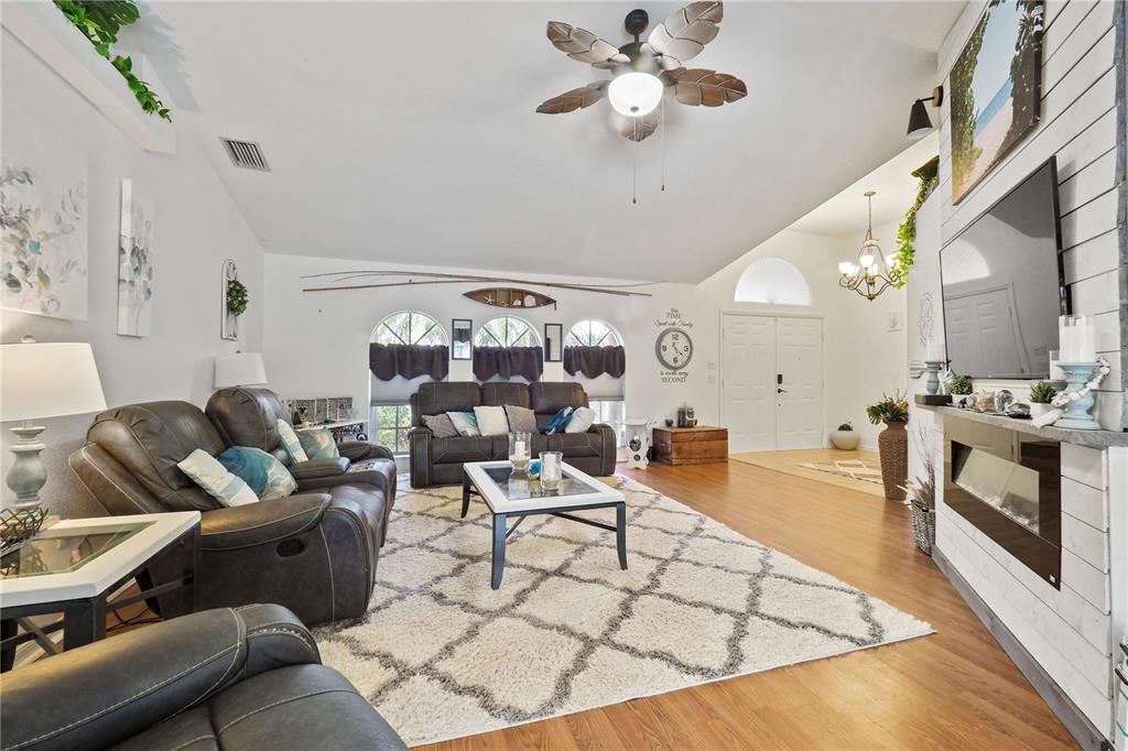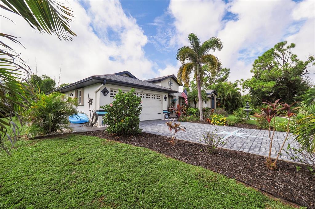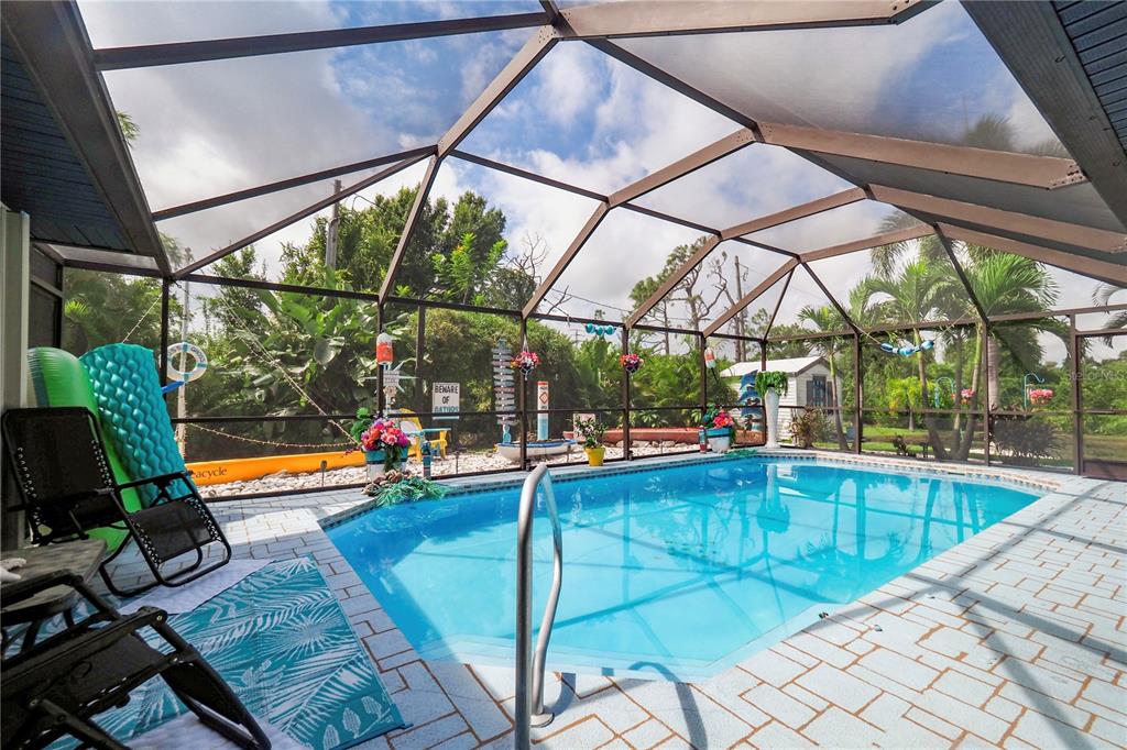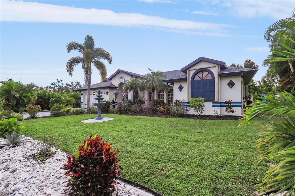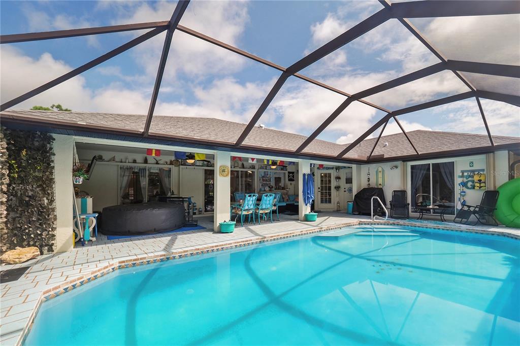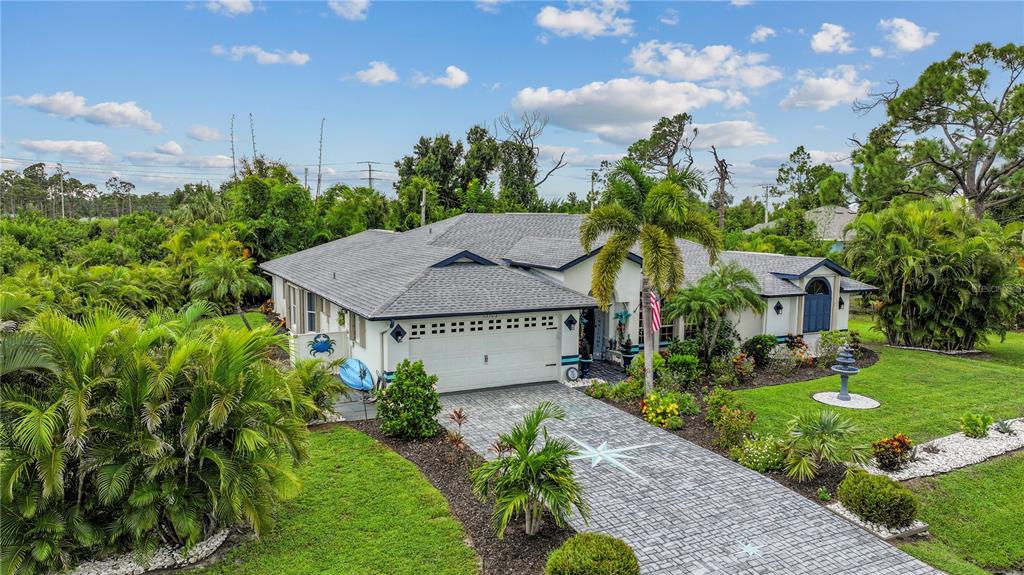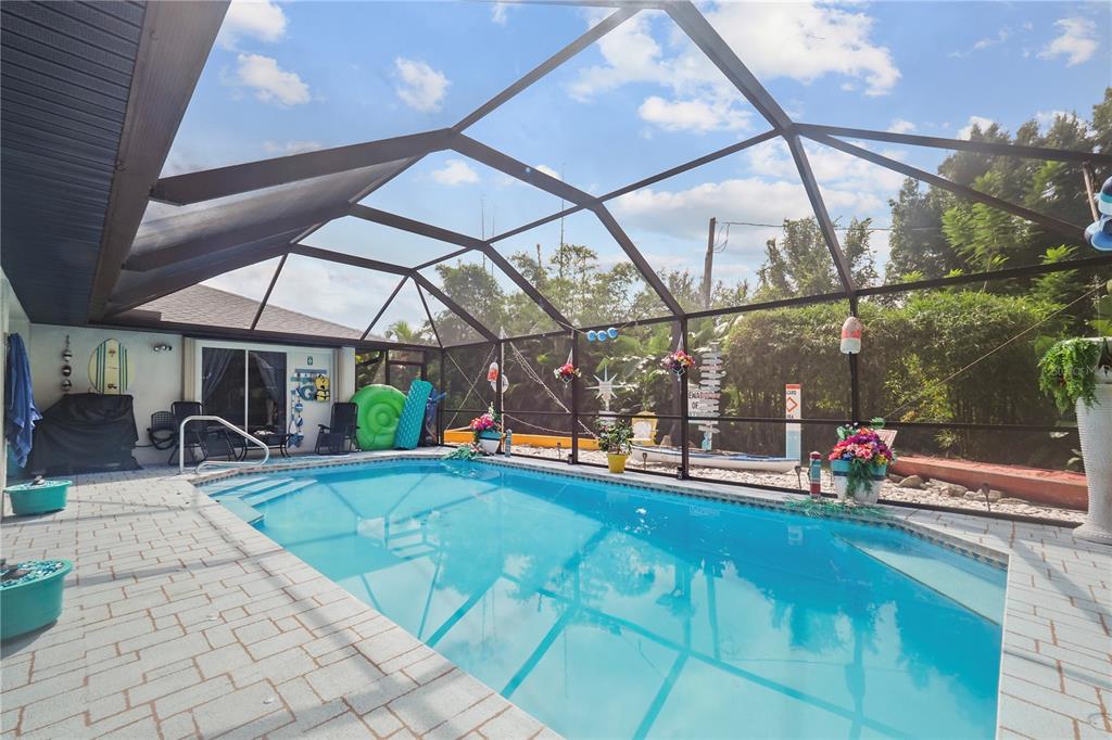 Welcome home to your beautiful coastal oasis situated in the desirable community of gulf cove! this picturesque home is situated on a high elevation corner lot, surrounded by palm trees and beautiful expansive landscaping framing the double lot. you’re greeted with double doors opening to a lovely foyer with vaulted ceilings throughout, an accent wall in the spacious great roomwith a built-in electricfireplace, front windows for more natural light and a stunning rear view through the adjacent triple sliding glass doors to the breathtaking private backyard, featuring the stunning heated pool within the covered screened lanai area, perfect for entertaining and relaxing! the tranquil master bedroom boasts its own private patio door access to the pool, two walk-in closets and an ensuite bathroom, complete with a discreet pocket door, full-size linen closet, double sinks, corner tiled shower and oversized garden tub, along with a private water closet. the open, modern kitchen offers stainless steel appliances, including a new refrigerator and new deep sink, solid surface countertops along with a convenient pantry and plenty of storage. enjoy your pool view while you’re preparing meals,sitting at the attached bar enjoying a snack or relaxing in the lovely breakfast nook, perfect for your morning coffee! the spacious dining room could also be used as a separate living area and there are two additional bedrooms in the adjoining wing of the home, each complete with large walk-in closets, whilethe rear bedroom alsohas a privatepatiodoor access to the pool. the second bathroom features an outside locking door for easy pool access, new vanity, and tiled tub/shower combo. the laundry room, which is situated steps from the 2-car garage, offers a large utility sink, a front-loading washer/dryer set, complete with a folding station on top! this immaculate property is move-in ready and offers newer attached hurricane shutters on all windows and lanai, newer a/c and updated lighting and ceiling fans throughout, a new roof 2021, professional painted inside/out in 2021, new pool pump 2024 and offers solarsecurity lights in the back surrounding the lanai. home has access to high-speed internet and cable if you work fromhome and quick access to shopping and dining and short walkor drive to the communitypark, featuring fishing, boat ramp, playground, and picnic area.PORT CHARLOTTE SEC 050