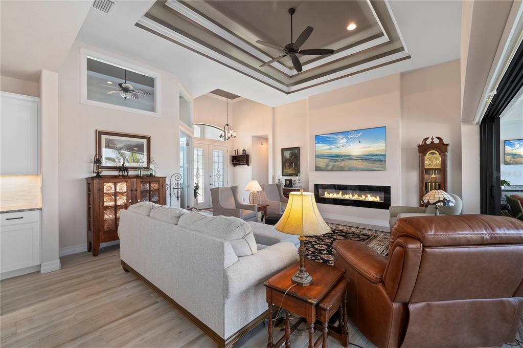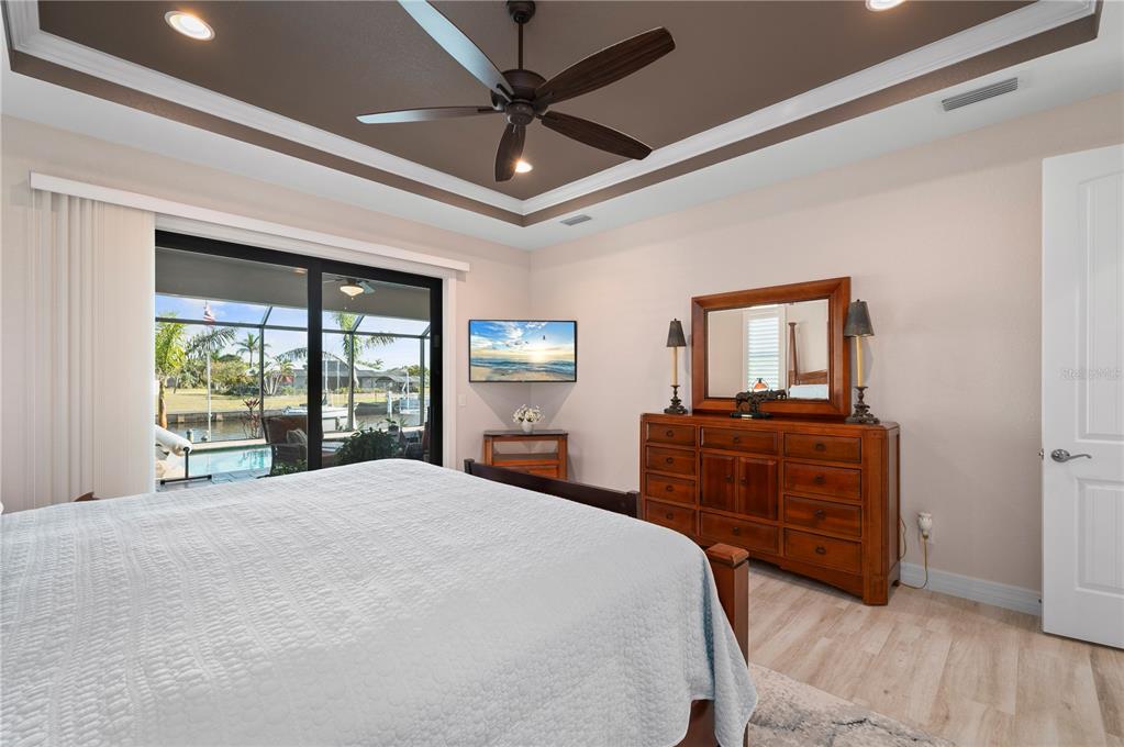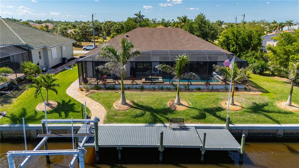 An exceptional waterfront sanctuary awaits, where bespoke finishes, tranquil views, and direct sailboat access to charlotte harbor define everyday living. built in 2021 with over $50,000 in thoughtfully curated upgrades, this custom 3 bedroom 2 bathroom home offers the ultimate in southwest florida luxury-without hoa restrictions, deed limitations, or flood damage. set on an extra-wide canal with intersecting canal views and no bridges to open water, this residence is a dream for boating enthusiasts. the exterior makes a striking impression with decorative concrete landscape curbing, lush plantings, and leaded glass double entry doors welcoming you home. inside, the ambiance is refined yet coastal, with driftwood-colored porcelain plank tile flowing throughout, 8-foot doors, and a double tray ceiling in the living room accented by soft rope lighting. zero-edge pocketing sliders open to a screened lanai featuring a solar-heated pool, smart-controlled spa, and a full summer kitchen with granite counters and marine-grade cabinetry. entertain beneath the stars with solar dock lights, soffit lighting, and outdoor floodlights, all while enjoying the ease of smart technology integrated throughout. a 3-zone hvac system with upgraded thermostats, a fully owned security system, and phone-controlled pool and spa functions ensure modern convenience meets everyday comfort. the chef's kitchen is a centerpiece of style and function, offering rich granite counters, custom wood cabinetry with staggered heights, glass doors, pull-out shelves, soft-close drawers, under-cabinet lighting, and a wood-accented island. stainless steel appliances and upgraded plumbing fixtures elevate the space, while the granite-topped laundry room with full cabinetry adds everyday ease. the living room wall is sound-insulated for privacy from the owner’s suite, while guest bedrooms are accented with chic barn doors. electric remote shades in the living and dinette areas, plantation shutters throughout, and an elegant in-wall electric fireplace add layers of luxury. this home was built for performance as well as beauty, with full spray foam insulation in the attic and garage, all impact-rated windows and doors (including the garage), and an oversized 23x30 insulated garage with epoxy floors and an ice maker water line. additional features include an irrigation system on a separate well, french drain gutters, pipes installed beneath pavers for future electrical needs, and a 50 amp generator hookup. plus, no hurricane or flood damage from recent storms. located just minutes from charlotte sports park, tampa bay rays spring training, historic punta gorda, waterfront restaurants, weekend farmers markets, and boutique shopping, this home captures the essence of elegant coastal living-designed for those who expect more.PORT CHARLOTTE SEC 044