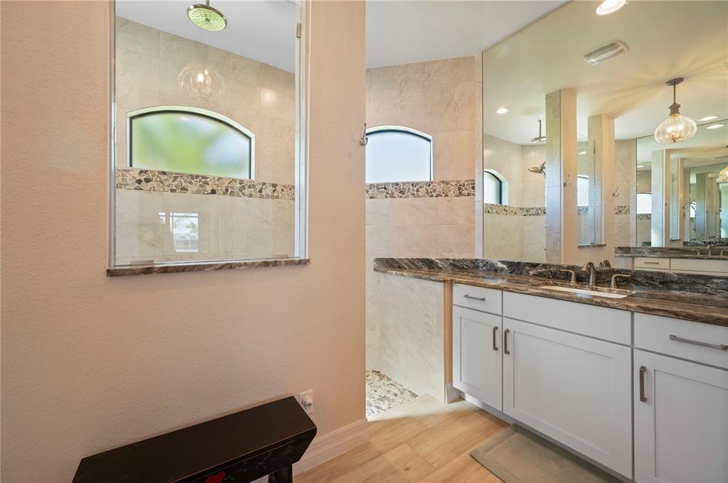 Split BedroomBuilt-in Features Walk-In Closet(s) Vaulted Ceiling(s)Ceiling Fan(s) High Ceilings Stone Counters Thermostat Open Floorplan Window Treatments Solid Wood Cabinets Primary Bedroom Main Floor Coffered Ceiling(s) L DiningCathedral Ceiling(s)Exterior Features:
