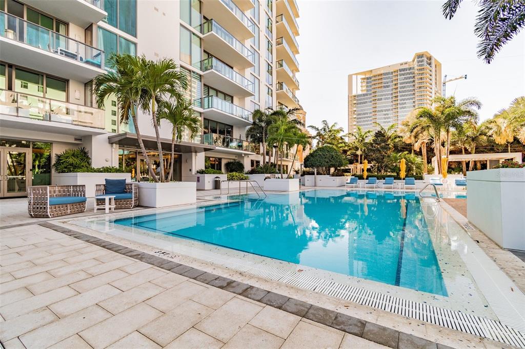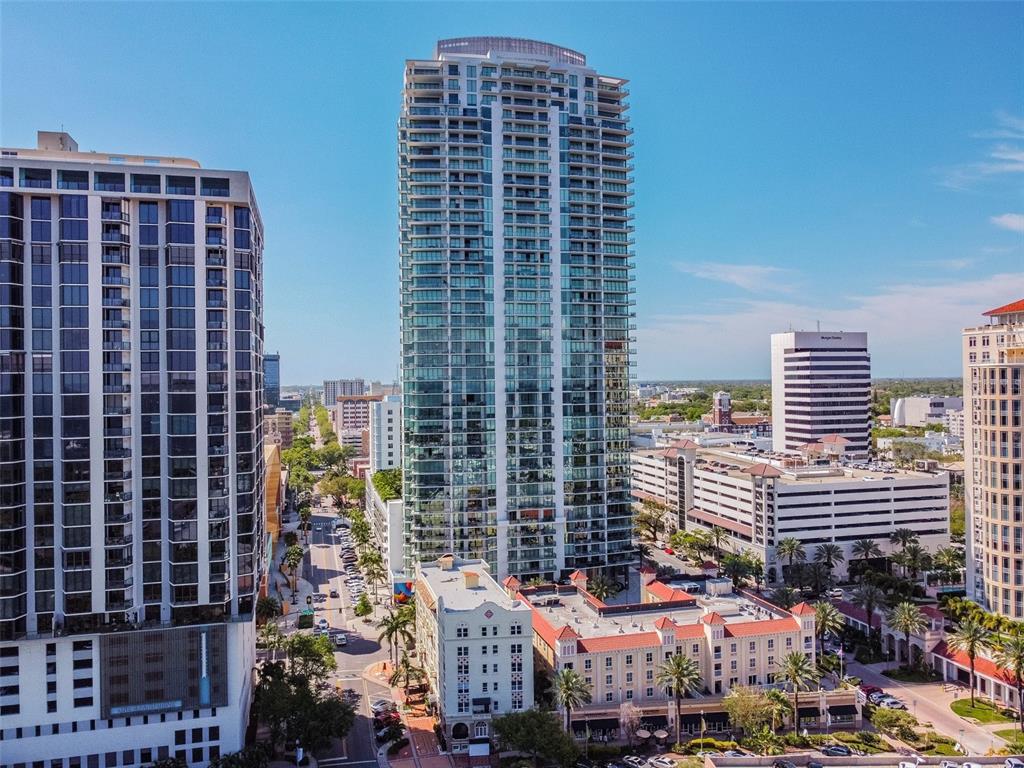 Experience modern luxury in this stunning 2-bedroom, 2.5-bath residence with a spacious den—perfect for a home office or guest space. iconic contemporary architecture, defined by sweeping lines and expansive glass, fills the home with natural light and a sense of openness. built to the latest standards for energy efficiency and structural integrity, every detail is thoughtfully crafted for comfort and style. the gourmet kitchen is outfitted with state-of-the-art built-in appliances, imported european cabinetry, and elegant quartz countertops. rich porcelain flooring flows throughout the main living areas, while spa-inspired bathrooms feature premium fixtures and finishes. extend your living space outdoors with expansive private terraces and sleek glass balcony rails—ideal for relaxing or entertaining. this home includes two assigned parking spaces in a secured garage. enjoy an unmatched lifestyle with world-class amenities: a dramatic 30-foot high atrium lobby, three resident lounges, a private bar, and a 5,000 sq. ft. freestanding fitness center. the 40,000 sq. ft. amenity level offers a 75-foot lap pool, hot tub, outdoor grills, cabanas, club room with catering kitchen, and formal dining area. plus, 24/7 security, on-site property management, concierge services. all of this, right in the heart of the action—just moments from top-tier dining, shopping, and entertainment.100 1ST N #2304A, ST PETERSBURG, FL 33701