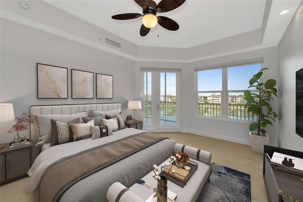 One or more photo(s) has been virtually staged. **freshly painted, vacant and move-in ready** this premier corner unit at waterfront on main st offers breathtaking views of lake uhlein and the lakewood ranch country club golf course. located in the heart of lakewood ranch, it is close to highly-rated schools, i-75, sarasota airport, beaches, golf courses, dining, and shopping at university town center mall. just minutes away are restaurants, bars, shops, a movie theater, and medical facilities. classic car shows, live music nights, art shows, and holiday events make this a vibrant lifestyle destination. the open floor plan features high ceilings and bay-window for additional natural light. the third bedroom/office provides flexibility when guests visit. enjoy resort-style amenities like the pool (salt water), spa, fitness center & clubhouse. perfect for a year-round residence or second home, this pristine condo is in the most desirable lakewood ranch location. option to buy available, furnished option available10520 BOARDWALK #401, LAKEWOOD RANCH, FL 34202