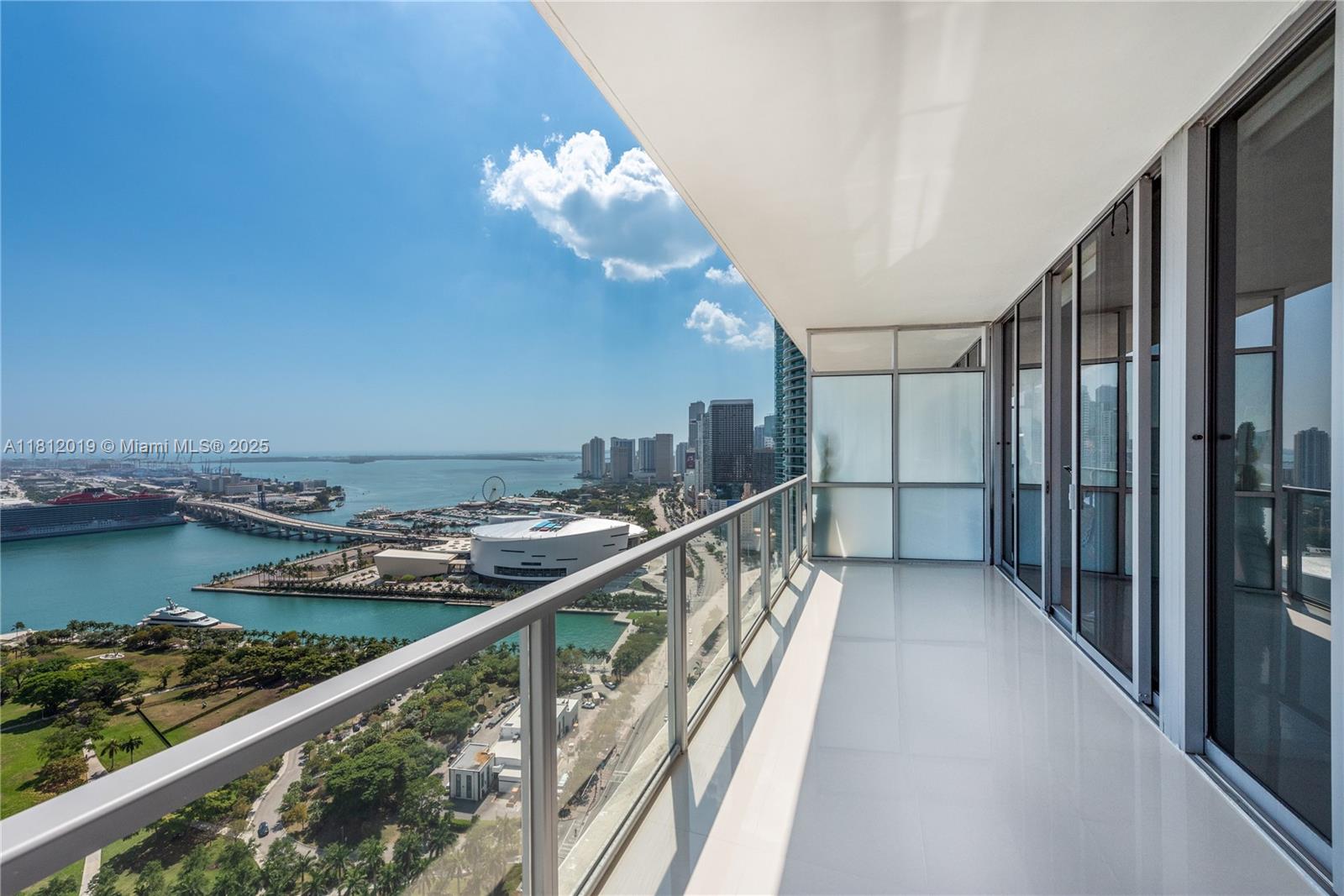 Enjoy the spectacular views to the ocean, port of miami & miami beach!! 2 beds, 2 baths + half bath. kitchen with stainless steel appliances. white tile floors. private elevator. impeccable conditions! amenities includes 8,000 sq. ft. signature rockresorts spa and fitness center with view of biscayne bay, 2 pools, sauna. 24hs security & valet parking!!! marquis is located directly across the street from museum park, pamm and miami science museum. available on august 4th, 2025.1100 BISCAYNE BLVD #3604, MIAMI, FL 33132