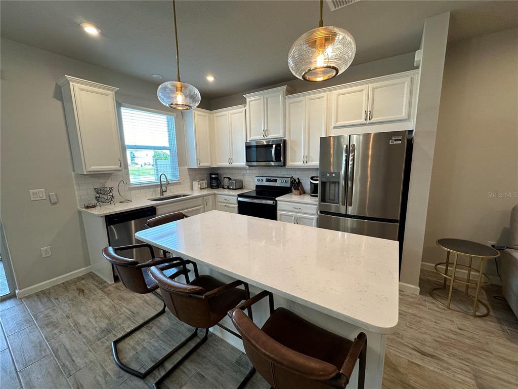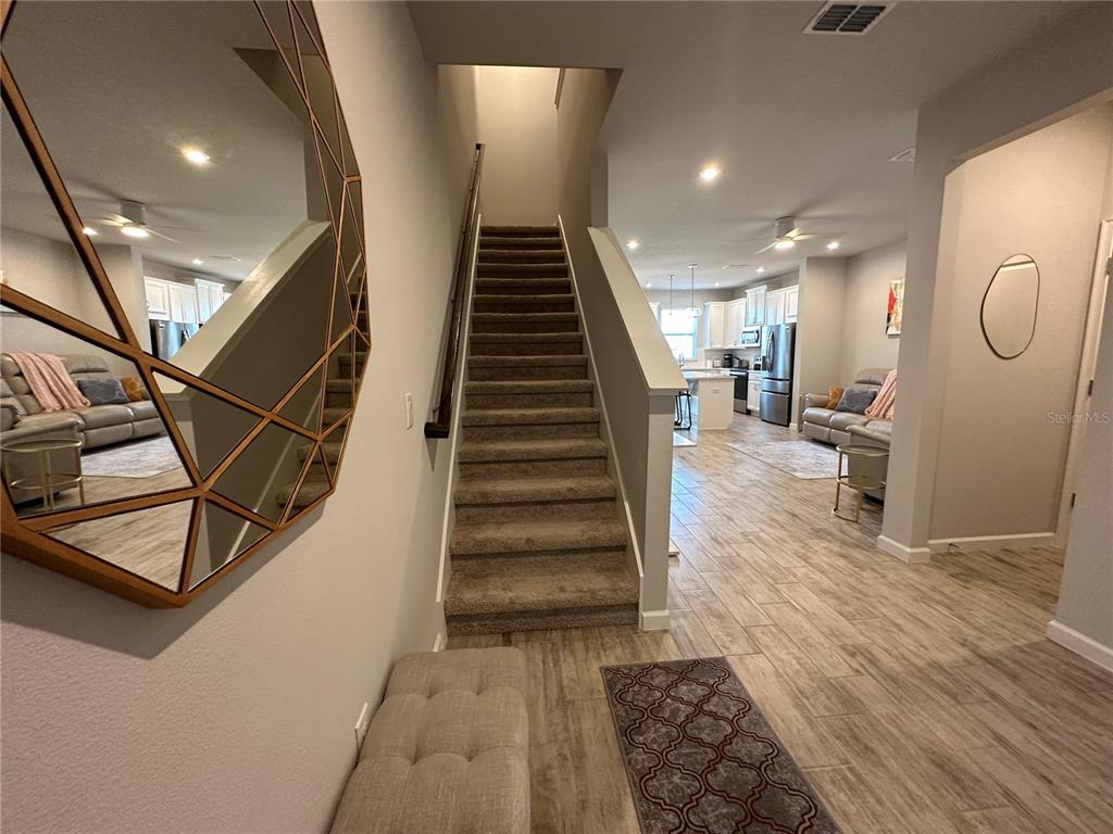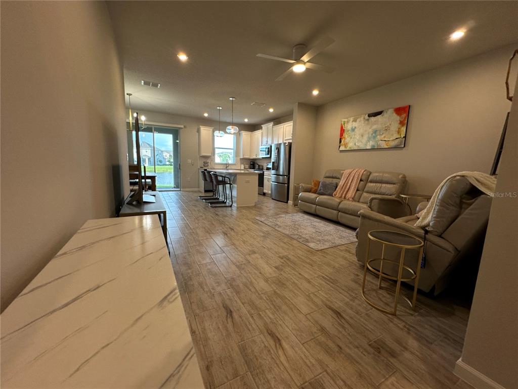 Available 9/1/25. welcome to your contemporary, spacious townhouse in harmony of lakewood ranch. complete with ceramic tile plank flooring throughout the main living areas on the first level, this two-story townhouse has 3 bedrooms / 2.5 bathrooms. the modern kitchen has gorgeous quartz countertops, a huge island with a sink and two gold-toned downlighting, 42-inch upper cabinets. in the spacious living area, unwind with your loved ones on the lazy boy couches. when you walk into the lanai, enjoy the beauty of the nature and the beautiful water view. go upstairs to the living quarters and discover the roomy master suite with an exquisite master bathroom including double vanity sinks and quartz countertops. additionally, there is a laundry room with upscale washers on this floor, and the other two roomy bedrooms are situated opposite the shared bathroom. additional amenities of the house include all the necessary cooking supplies, pots, pans, and silverware, as well as accordion-style shades on all the windows and fans throughout. this harmony at lakewood ranch complex features walking trails through a conservation area surrounding the community, a state-of-the-art fitness center, a clubhouse, an events lawn, and a pool. in a short distance are the utc shopping district, lakewood ranch main street, lecom dental school, and the energetic city of sarasota. come see this townhome! you will be excited from the time you open the front door!Townhouse 3 bedrooms - HARMONY AT LAKEWOOD RANCH PH II-C 1-4 for Rent