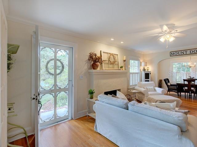 Quintessential cottage in mount dora for rent! tucked away on a desirable street and within a short walk to historic downtown boutique shops, waterfront, parks and top- rated restaurants and cafes. this private residence lives big. the new picket fence with arched arbor and inviting front porch welcome you into the cozy and tastefully, fully furnished/turn key hummingbird cottage. light filled rooms, archways & original hardwood floors throughout. the comfortable floor plan has spacious dining room with built ins, the living room has 50 inch led smart tv. and fireplace. the den/florida room is the perfect place to read, relax and enjoy a morning cup of coffee or evening cocktail. the kitchen has period cabinets, new appliances, and pantry/laundry closet has stacked washer and dryer! the bedroom has walk in closet and bathroom has shower with tub. one car garage, security system and 1/3 acre private yard with beautifully maintained gardens! conveniently located close to all amenities. available april 1, 2025- december 31, 2025 on a monthly basis or long term. everything is included, electric, water, sewer, lawn maintenance and internet/wifi.1242 N ALEXANDER, MOUNT DORA, FL 32757