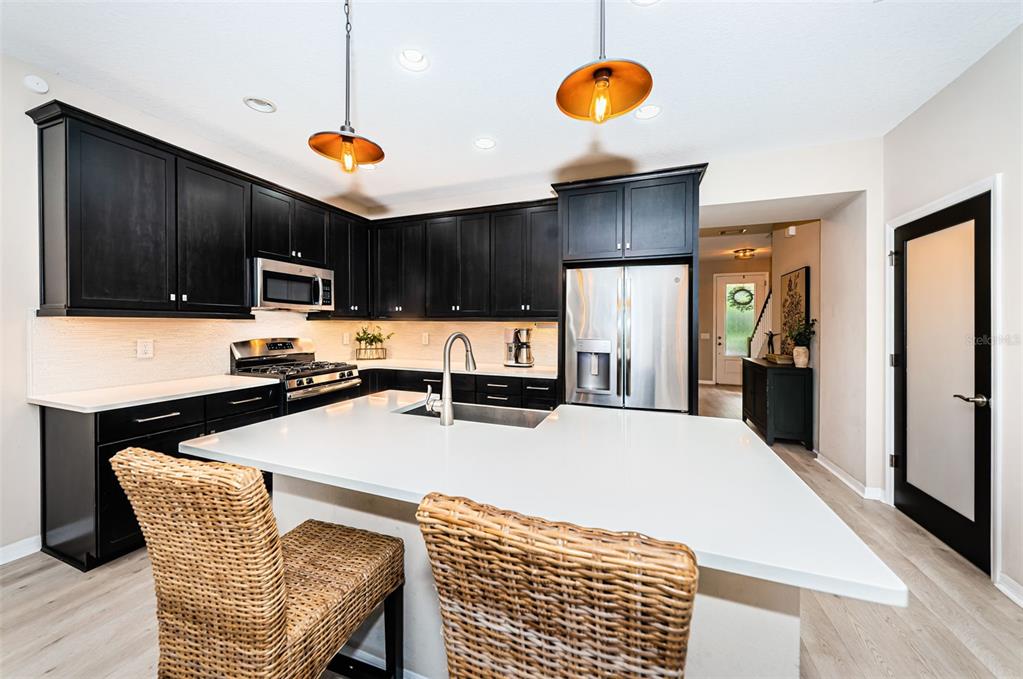 Highly desirable starkey ranch community - rental available! don't miss out on this fabulous 3 bedroom rental. you are going to love this home! very rare amazing starkey ranch town home- end unit! this chatham by m/i homes is an open floor plan with a rear entry 2 car garage, 3 bedrooms, 2 and a half bathrooms plus a flex room (office) that could be easily converted to a 4th bedroom to accommodate a larger family along with a screened courtyard. if you are searching for a beautiful living space inside and options for outdoor activities and enjoyment outside, then do not wait! upon arrival take note of the amount of curbside parking available. this allows for convenience to entertain in this more than welcoming home. once you enter you cannot help but to be amazed. the entry is welcoming with the office flex space accessible upon entry. the stairwell and entry portray a welcoming home. immediately you see the advantage of the end unit as the natural light entering the home and radiating from the main living area is palpable. the extra large living area is home to the primary gathering and television room, the designer kitchen with large island which accommodates multiple bar stools which makes it perfect for an integrated entertainment zone. the kitchen is accented with a tile back splash, gas range, high cabinets for plenty of storage and stainless steel appliances. there is a built in wine/coffee bar to accent this area. this main living area has an abundance of natural light coming in from the side windows and rear windows that look out to your private screened in courtyard which also has pre-run gas stubbed in making it easy to create your own outdoor kitchen area. the screened lanai/courtyard is great for storage, gardening or gathering and serves as the gateway two and from the home to the 2 car detached garage. the second floor boasts your master bedroom and an en suite bathroom complete with large walk in closet, dual sinks and walk in shower with rain shower head. you will also find bedrooms 2 and 3 are upstairs with an additional bathroom and laundry room. currently one of the auxiliary bedrooms is used for a flex office and in home exercise room.Townhouse 3 bedrooms - STARKEY RANCH VILLAGE 1 PH 3 for Rent