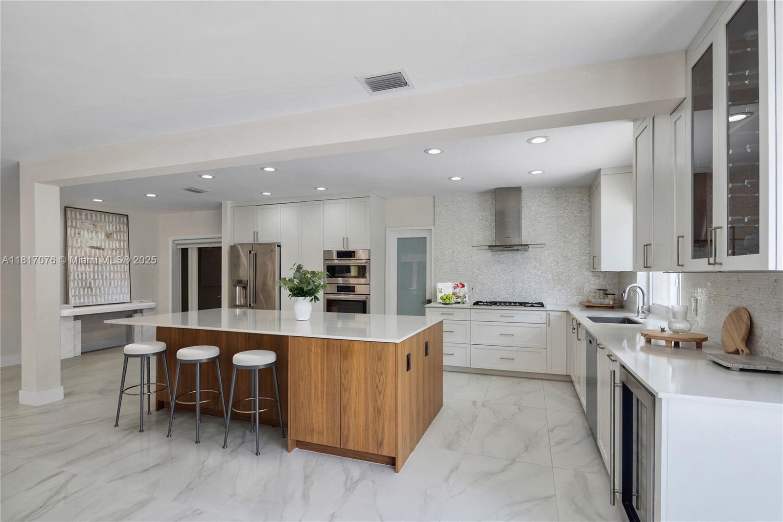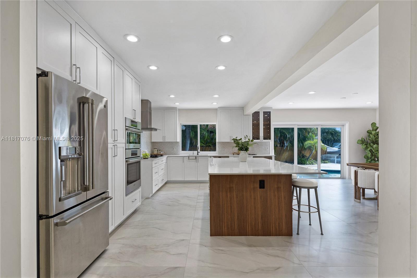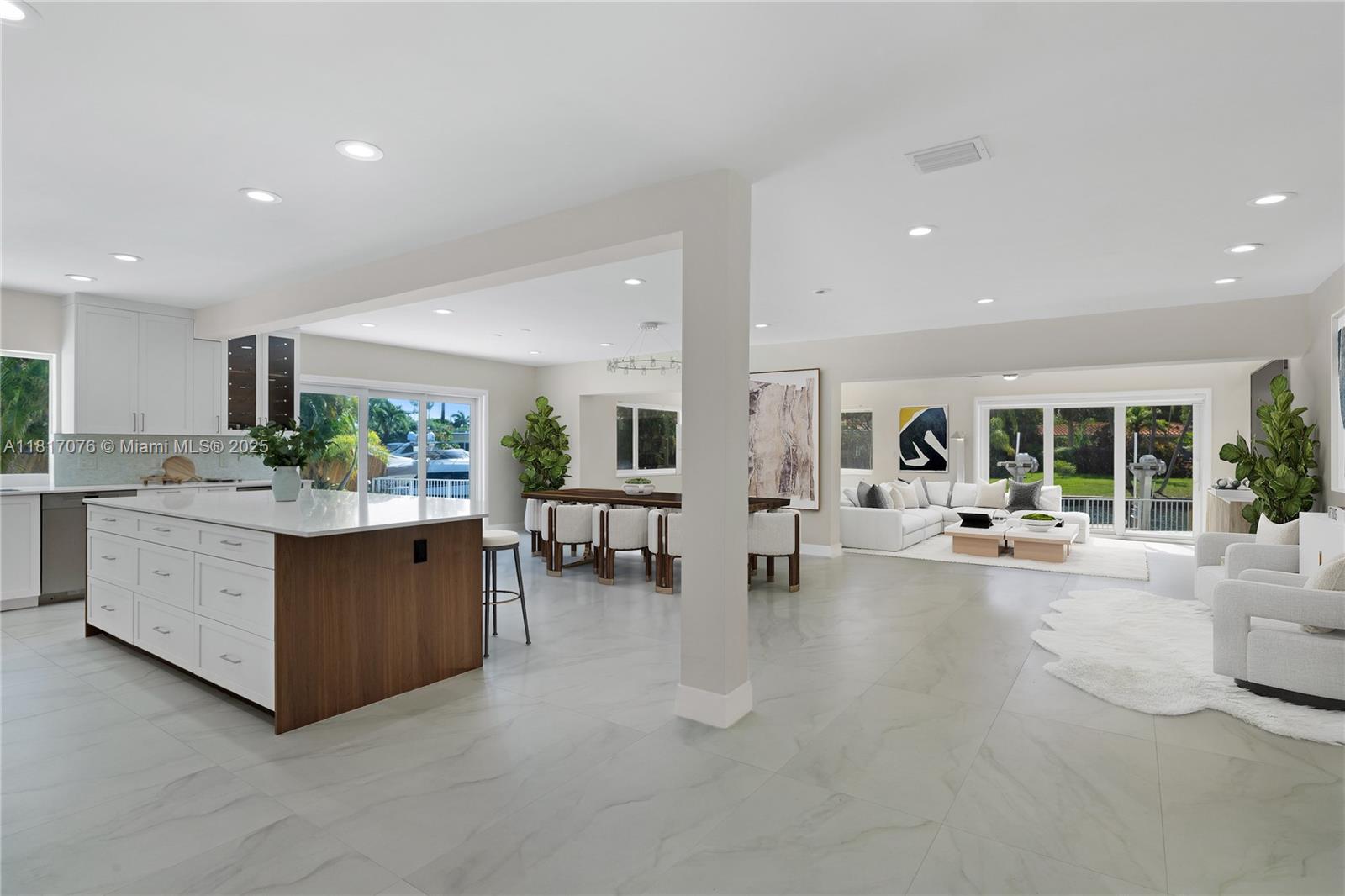 Discover waterfront luxury in this newly listed keystone islands gem boasting 150 feet of waterfrontage from a spacious 12,315 sq ft lot. this beautifully renovated 5-bedroom, 4-bathroom modern home offers 3,000 square feet of thoughtfully designed living space at the peaceful end of a cul-de-sac in gated keystone point. enjoy no fixed bridges to the bay, a 16k boat lift, and updated seawall for the ultimate boating lifestyle. inside, natural light floods the open floor plan highlighting a gourmet kitchen with high-end appliances and a center island perfect for gatherings. the serene primary bedroom features abundant closet space and stunning water views. with proximity to upscale bal harbour shops, top schools, and aventura mall, this waterfront retreat combines location and luxury.12985 ORTEGA LN, NORTH MIAMI, FL 33181