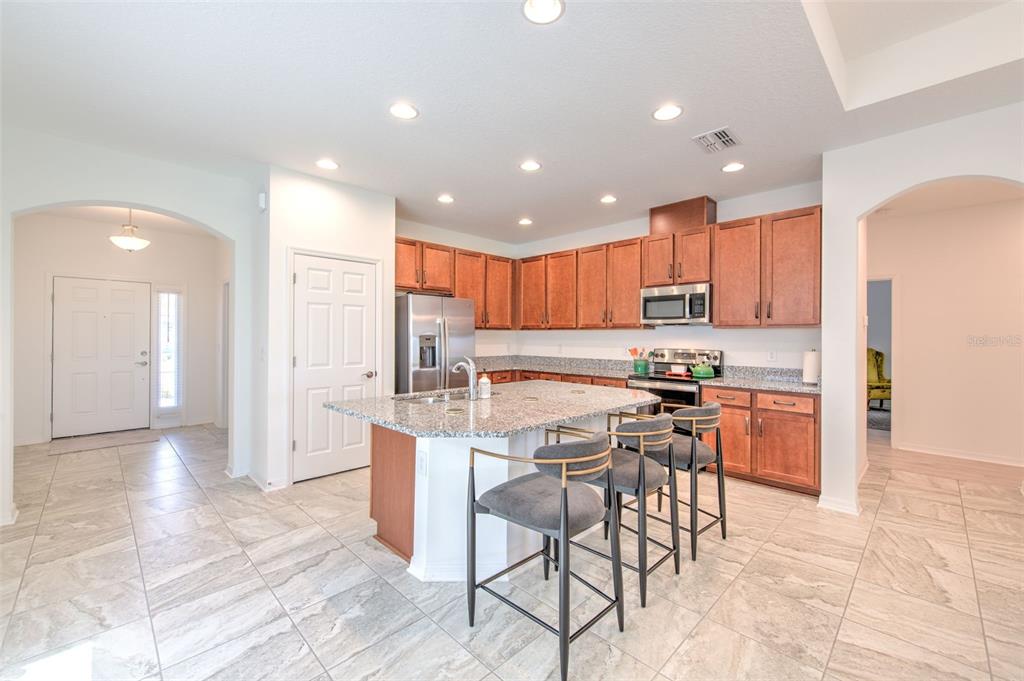 Ceiling Fan(s) High Ceilings Living Room/Dining Room Combo Stone Counters Open Floorplan Solid Wood Cabinets Kitchen/Family Room ComboCathedral Ceiling(s)Exterior Features: