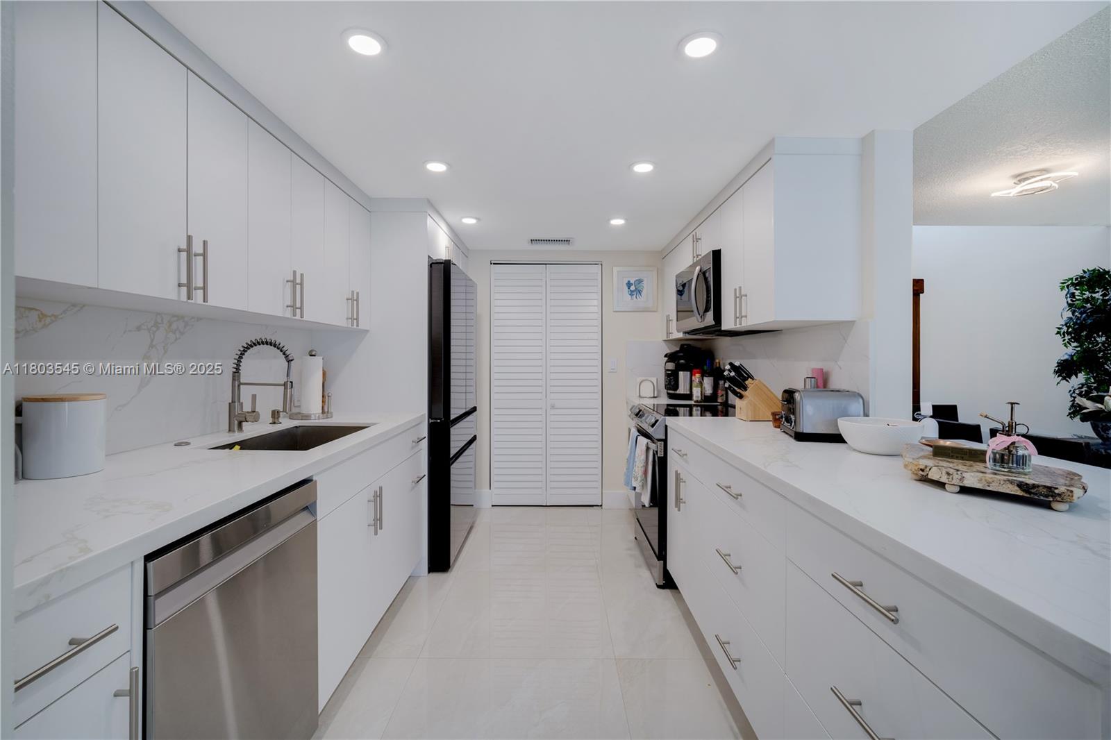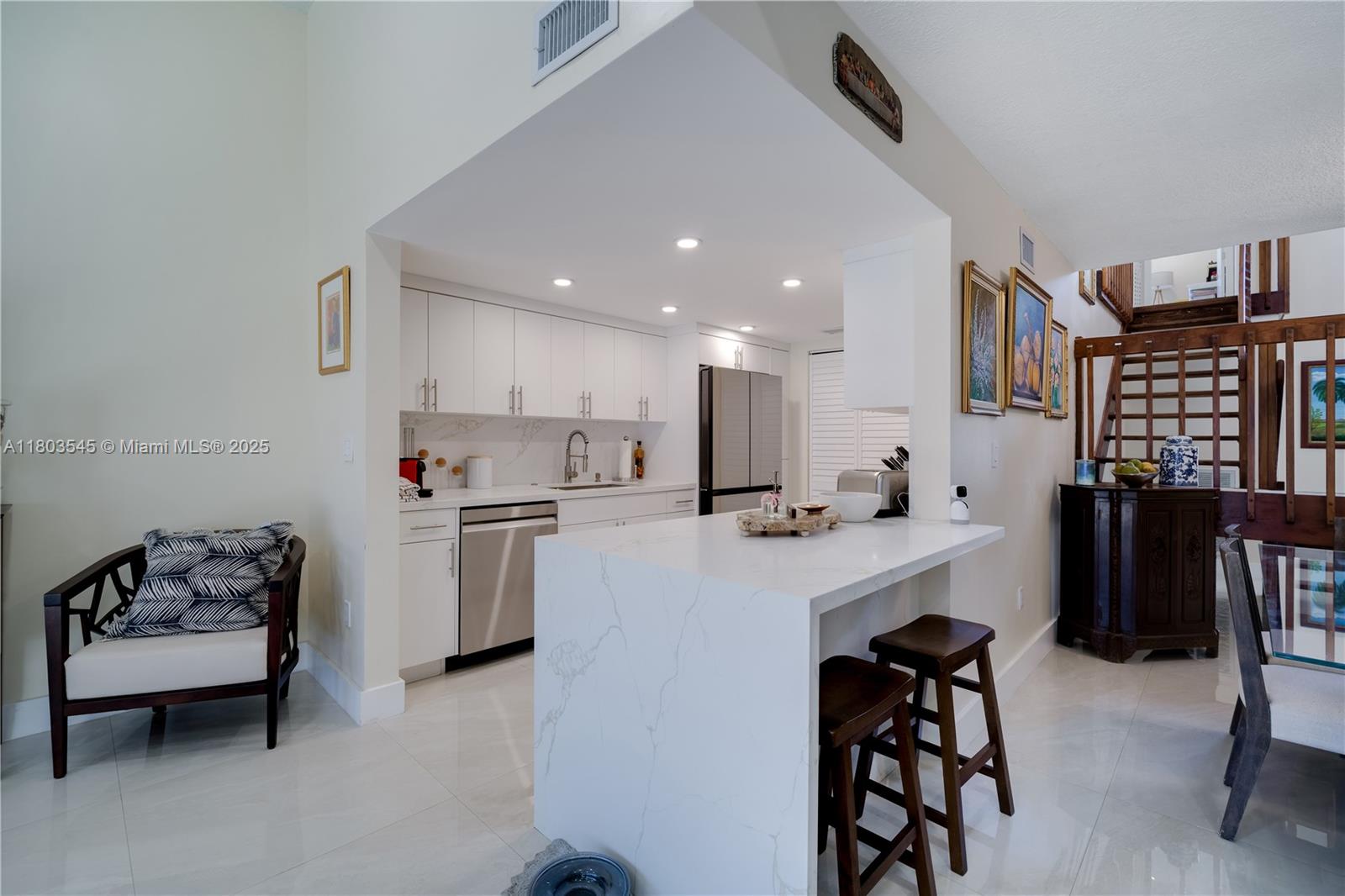 Beautifully remodeled townhouse in calusa point with 3 bedrooms and 3 full baths, including a bedroom and full bathroom downstairs! this is the largest model in the community and features a new roof replaced in 2018, all impact-resistant windows and doors, totally updated kitchen with quartzite waterfall countertops, and large format porcelain floors. calusa point is a well maintained and securely gated neighborhood with a 24-hour guard. you will love the lush landscaping, community pool, tennis courts, racquetball & basketball courts, and more. this is not a condo, so the property will qualify for financing with fha & va, and low down payment conventional mortgages. the hoa is having all buildings painted in june! click on the virtual tour link to see a video tour.13370 SW 89TH TER #UNIT E, MIAMI, FL 33186