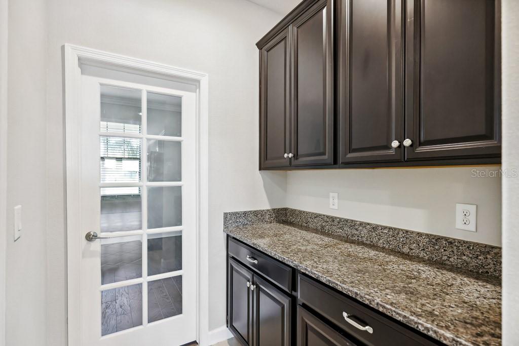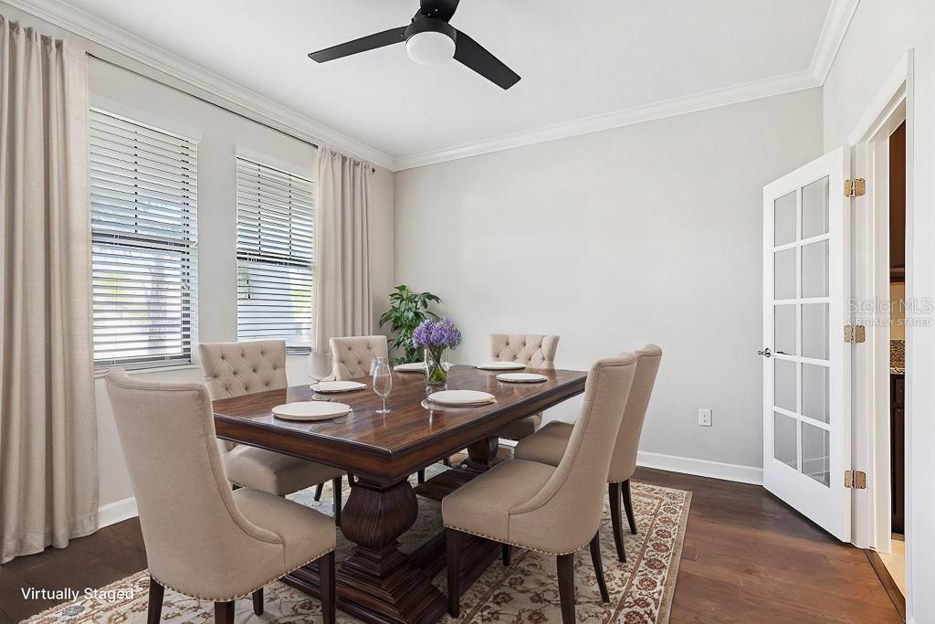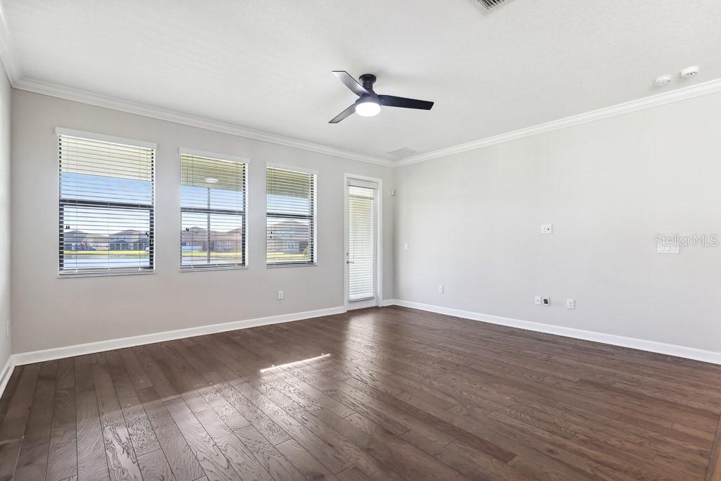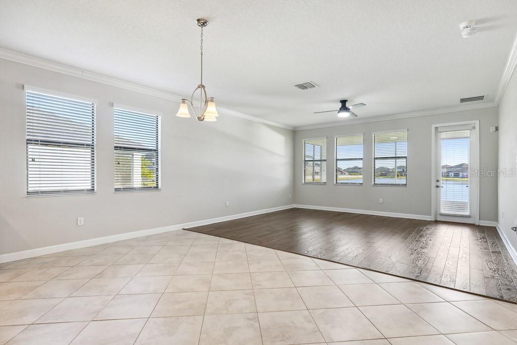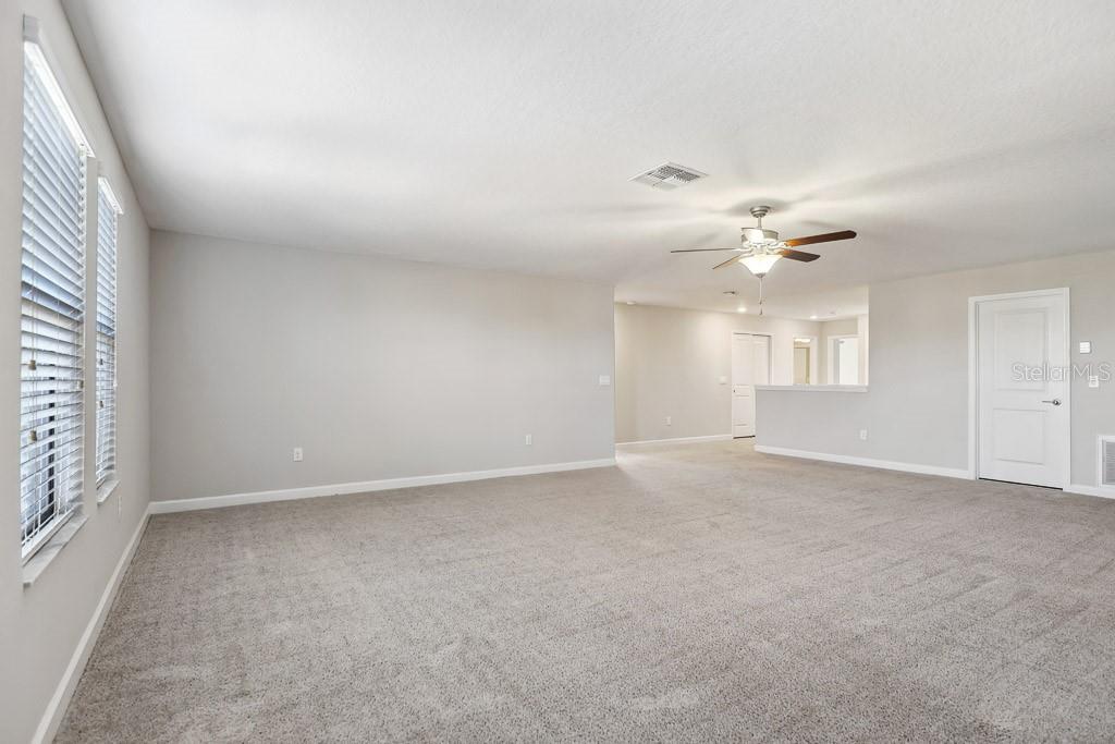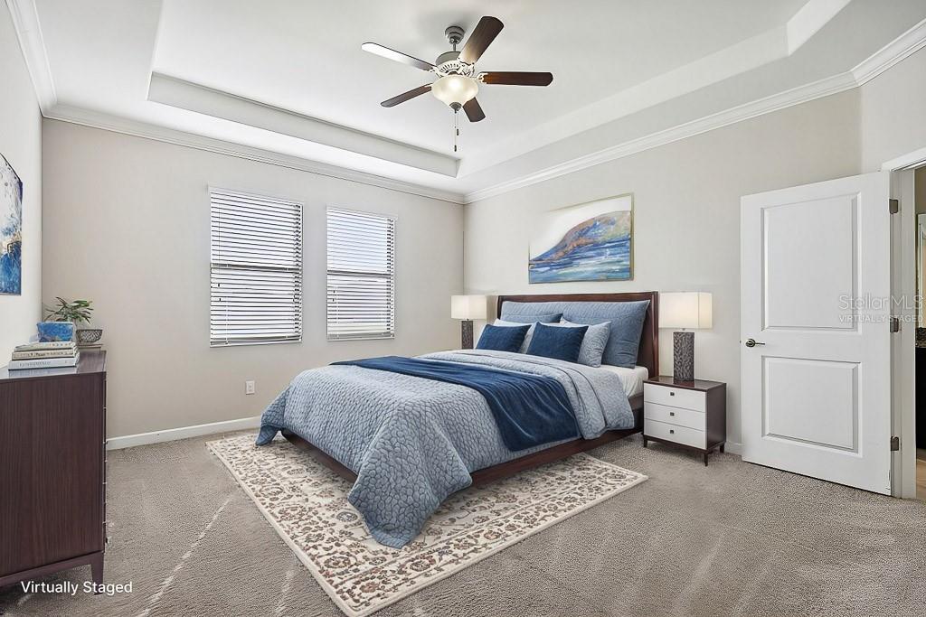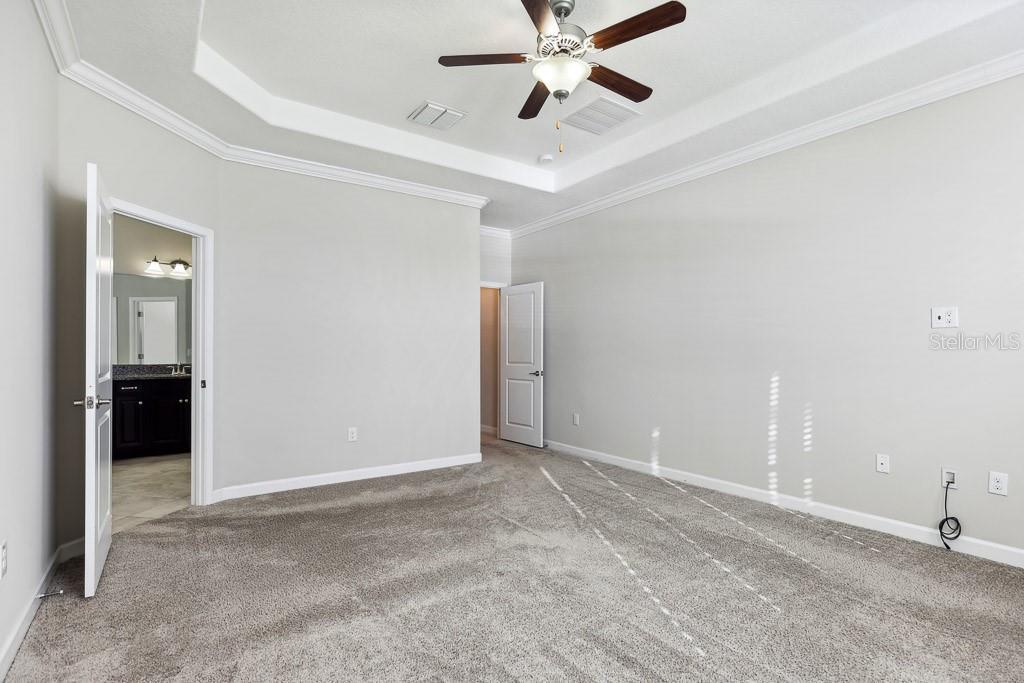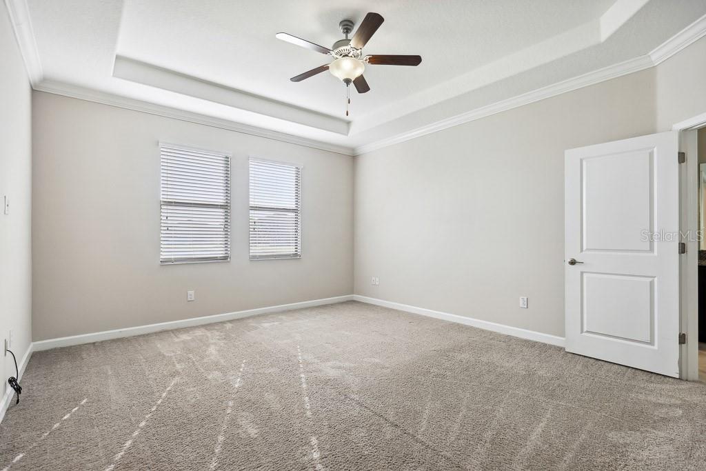 Split Bedroom Walk-In Closet(s)Ceiling Fan(s) High Ceilings Stone Counters Thermostat Open Floorplan Window TreatmentsCrown Molding Primary Bedroom Main Floor Kitchen/Family Room Combo Tray Ceiling(s)Exterior Features: