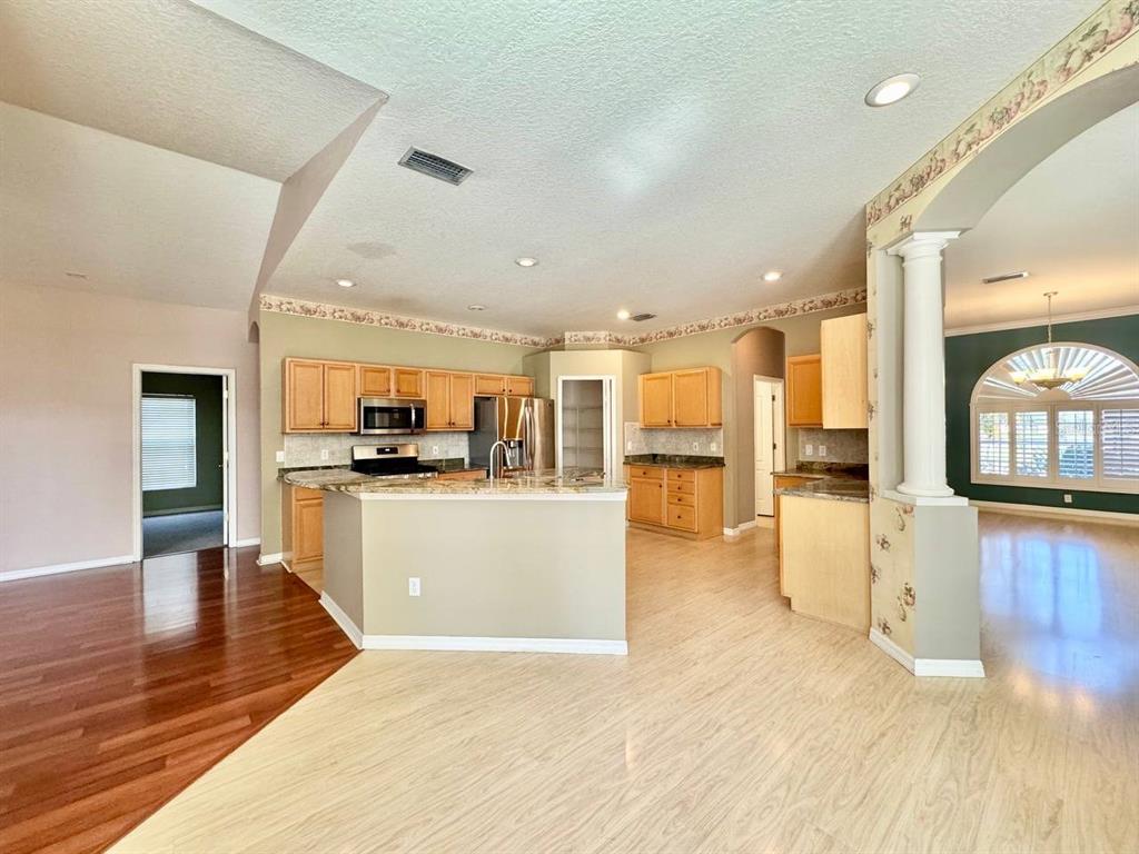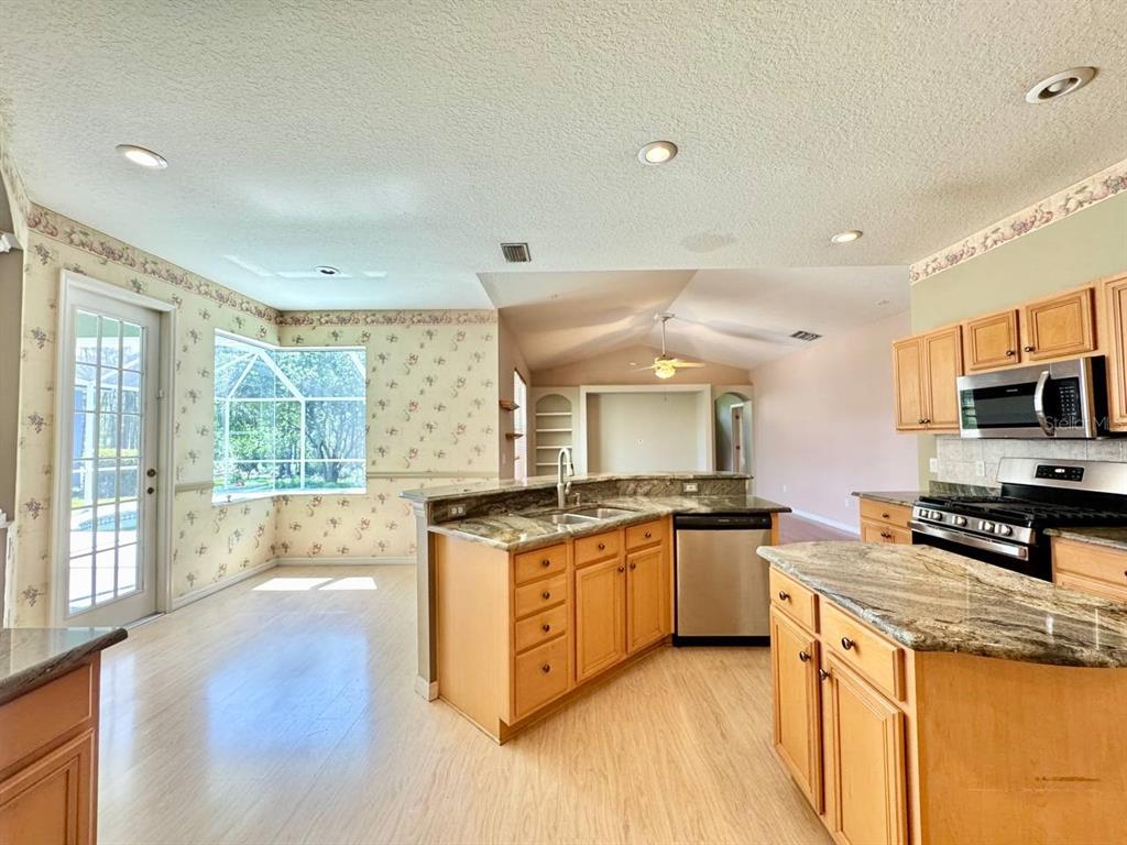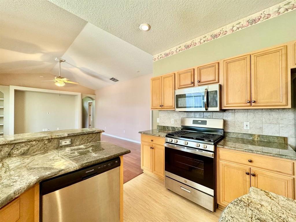 Walk-In Closet(s)Ceiling Fan(s) Stone Counters Open Floorplan Solid Wood CabinetsEquipment/Appliances:
