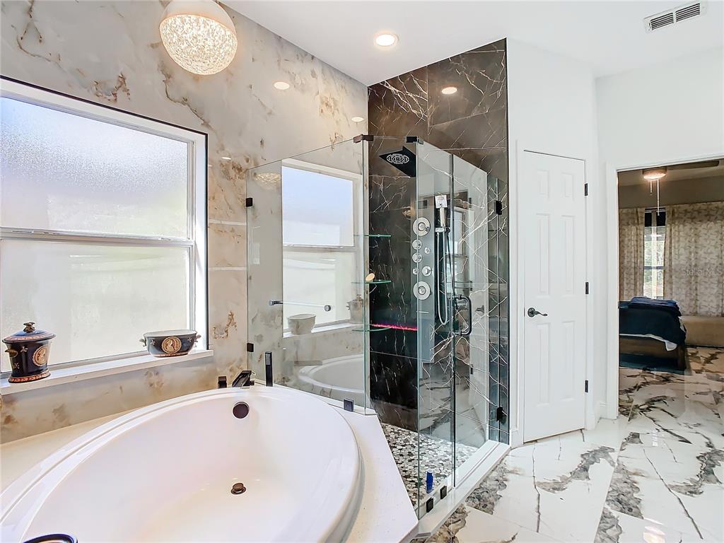 Welcome to his fully loaded 2,501 sq/ft, 4-bedroom, 3 bath, 3-car garage residence, in the desirable gated community of quail ridge. with beautiful walking/biking paths that run through the community, and just a 30-minute commute to tampa international airport, this stunner offers everything you’ve been searching for and more. step inside to find a fresh, contemporary vibe. new luxury large-format porcelain flooring runs throughout the light & bright, open-concept, split floor plan. in the family room grandiose accent wall and fireplace insert. the heart of the home boasts a fully equipped gourmet kitchen with top-of-the-line lg stainless steel appliances, granite countertops, ample cabinetry, and a breakfast bar. retreat to your private oasis in the spacious master suite, complete with a custom walk-in closet and a stunning en-suite bathroom featuring a dual vanity with quartz countertops and a large frameless led light mirror, a soaking tub, and a separate glass-enclosed shower with a multi-jet rain shower head & attachment, smart toilet, and decorative fireplace. this tranquil space is perfect for unwinding after a long day. three generously sized additional bedrooms provide plenty of space for family, guests, or a home office. the two additional bathrooms are also tastefully designed with top-of-the-line finishes, ensuring comfort and privacy for everyone. relax in the enclosed florida room or step outside to your beautifully landscaped backyard overlooking the wooded area with no rear neighbors. the screen patio is perfect for alfresco dining or morning coffee. enjoy the convenience of a spacious three-car garage, providing ample storage for vehicles, tools, and recreational gear. this home is fully loaded with all the works, including energy-efficient appliances, smart home technology, and arlo security system, giving you peace of mind and comfort. great location! conveniently located near suncoast veterans expressway for easy commute to tampa, as well as a wealth of restaurants, medical facilities, country clubs and parks, and more. call us to schedule a private showing today!16829 MIDSUMMER, SPRING HILL, FL 34610
