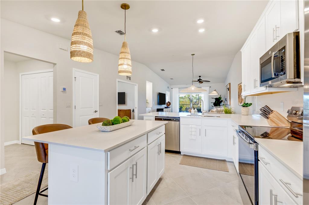 Brand new 2br/2ba + den located in the heart of a wellen park golf & country club community! this light-filled home offers an open floor plan, split bedrooms for added privacy, and a versatile den perfect for a home office or guest space. enjoy serene golf course views and lush landscaping from your private front & back screened-in patio. the kitchen features quartz countertops, stainless steel appliances, and ample cabinet space and is completely stocked with all of your cooking needs. spacious primary suite with king bed, dresser, tv & night stands, walk-in closet and dual vanities and gorgeous golf course views. second bedroom offers queen bed and den has pull out sofa that pops up in to full sized queen bed. all linens and towels and beach chairs included in this monthly rental. community amenities include pickleball & tennis courts, fitness center, spa, resort-style pool, tiki bar and vibrant social calendar. located close to downtown wellen park with restaurants and shopping and nightly entertainment, braves spring training stadium, tons of local events and close to 5 of southwest floridas top beaches! you will love your stay here and want to come back for years to come!17440 OPAL SAND #202, VENICE, FL 34293