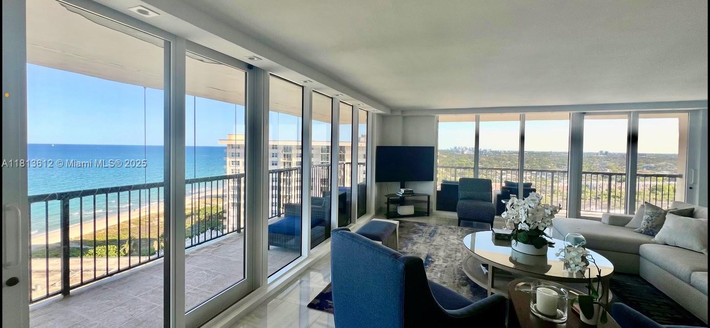 Amazing views of the ocean, intracoastal and skyline. southeast corner, brand new floor to ceiling impact windows and doors. large wrap balcony, semi-private elevator, beautifully furnished 3 bedroom, 2.5 bath, 2 garage parking spots/tandem. wonderful amenities include oceanfront heated pool, grill area, tennis, bocci & pickle ball courts, fire pits, gym, sauna, vehicle car wash & more. plenty of guest parking. available for annual or seasonal rental. great location. easy living by the sea within walking distance to shopping, restaurants & more.1800 S OCEAN BLVD #PH1507, LAUDERDALE BY THE SEA, FL 33062