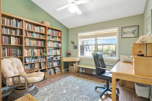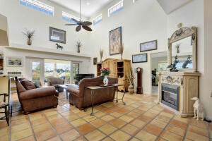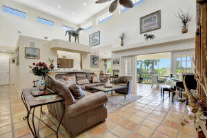 Old trail at ranch colony is the ideal golf home -.9 acre set in a conservation area - commanding views of the fifth hole of the brand-new gil hanse designed course on the jonathan's landing old trail golf course. stunning home with 18-foot ceiling has four bedrooms, two and one-half baths, office, large laundry room, and updated kitchen. dining room and large florida room overlook a landscaped, fenced yard with 40' pool set in brick paver pool deck. hibiscus, and bougainvillea provide a colorful backdrop.house measures 2,288 sf under air and 3,308 sf total. home updated in 2019 with new lighting system, new trane hvac, and new microwave. master is large, with access to florida room, and features a new bath in 2015 with walk-in shower and over-sized closet. 24/7 manned gate community18421 SE OLD TRL, JUPITER INLET COLONY, FL 33478