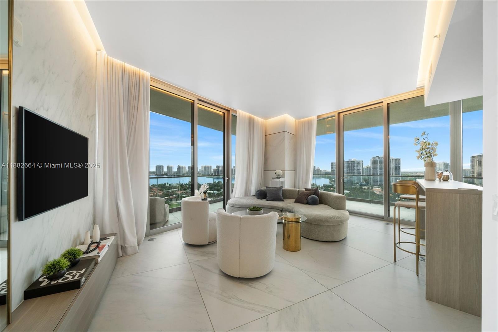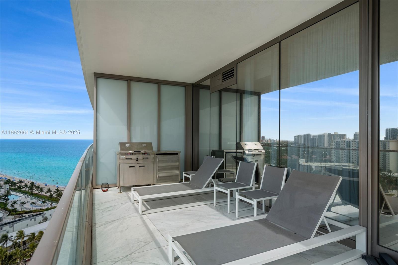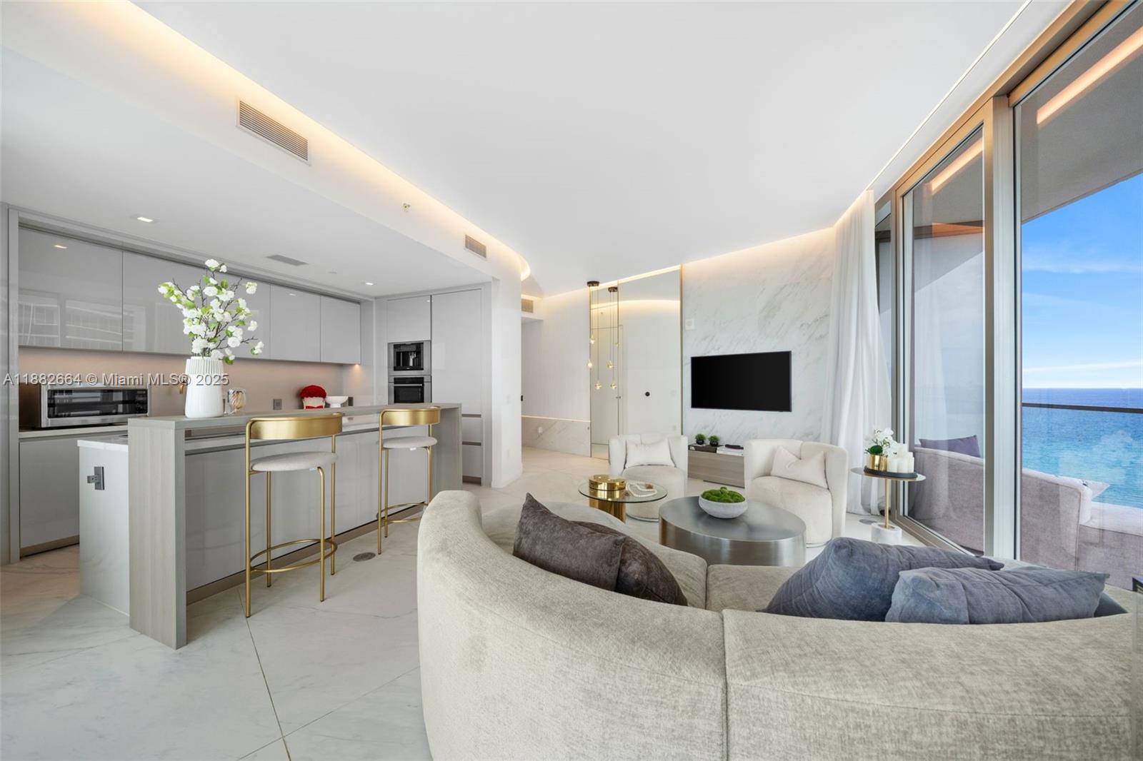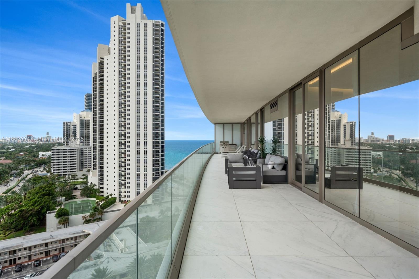 Discover refined coastal living in this 2br/2ba corner residence at armani casa tower. featuring 1,212 sq. ft. of interiors and an expansive 1,000 sq. ft. wraparound balcony with summer kitchen, this fully furnished home offers panoramic ocean, intracoastal, and skyline views from every room. designed with 10-ft floor-to-ceiling windows, an open layout, and a gourmet kitchen with top-tier appliances, the residence blends elegance with functionality. the primary suite includes a spa-inspired bath with soaking tub, glass shower, and walk-in closet. set on a 3.2-acre oceanfront site, residents enjoy exclusive amenities: heated pools, spa, sauna, fitness center, children’s play area, social lounges, valet, and direct beach access. a true luxury lifestyle in the heart of sunny isles beach.18975 COLLINS AVE #1205, SUNNY ISLES BEACH, FL 33160