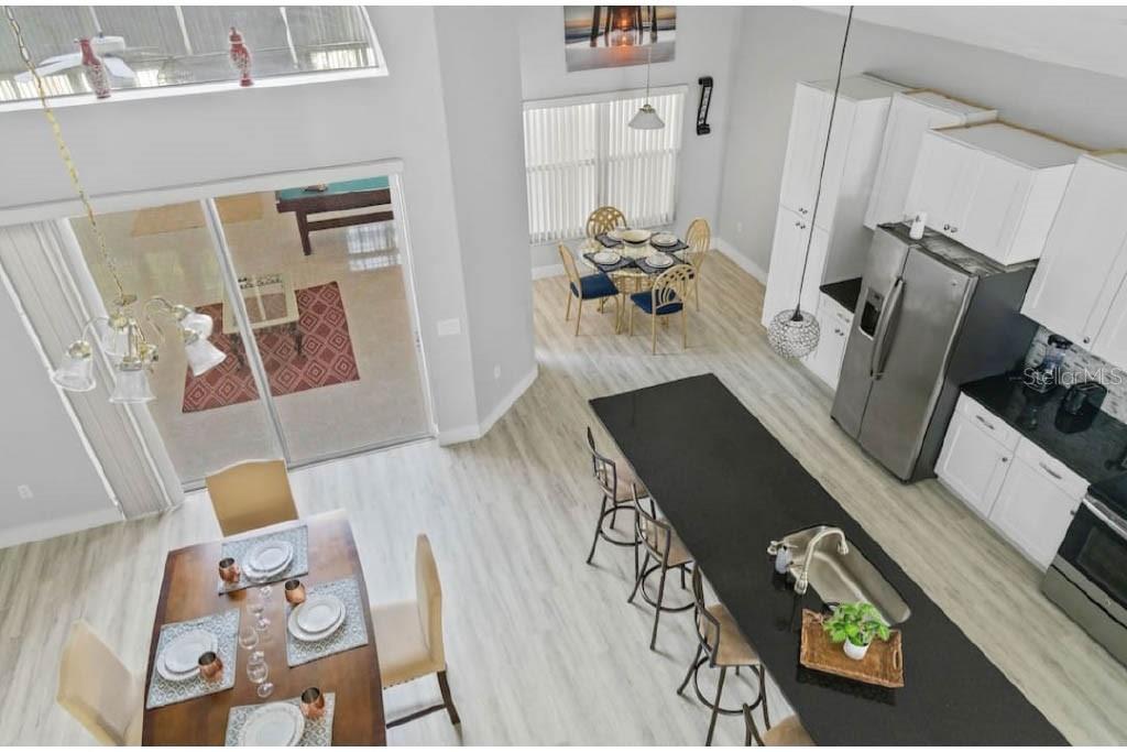 Move-in ready - open layout - four corners location - all electric!!! this charming two-story 2531 sf design meets all your needs with an abundance of open living space and gorgeous "wood vinyl plank flooring" throughout. you'll adore the renovated kitchen showcases beautiful light cabinetry complemented by elegant dark granite countertops, features a pantry cabinet, an oversized breakfast bar for additional seating, and an eat-in breakfast nook. the generously sized master bedroom, measuring 24 x 12, offers plenty of space for a sitting area or a tv nook, includes a walk-in closet, and boasts a remodeled bathroom furnished with double sinks, a soaking tub, and a walk-in shower. moreover, the first floor presents another room that can serve as a bedroom or office and includes a half bath. a lovely staircase ascends to the second floor, which contains two bedrooms linked by a shared bathroom, a loft space perfect for hobbies or board games, and a third bedroom with its own private bathroom. a stunning tiled florida room measuring 24 x 39 (850 sf) provides additional versatile living space throughout the year. lastly, a new roof was put in place in july 2021. location - location - location: four corners in davenport. a brand-new publix with dining options within the store is conveniently located just around the corner, along with local schools and a community pool/playground. you’re only a short drive from disney world, universal, sea world, and excellent dining and shopping opportunities. call or text to schedule an appointment.212 PURSLANE, DAVENPORT, FL 33897