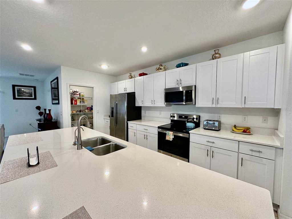 Single-family house located in the stepping stone subdivision. built in 2022. large backyard with a water view, 4 bedrooms, 3 bathrooms, and a 2-car garage. beautiful white cabinets, stainless steel appliances, and quartz countertops. tile floors throughout the house, except for the bedrooms, which are carpeted. screened patio.---application fee $55.00 per adult (18 & older) [submit 1 application for each adult, complete all fields applicable, upload picture id and proof of income.] --- proof of income minimum 3x the rent amount required. --- association approval not required. --- no short-term lease or airbnb (12 months lease only). --- renters insurance required. --- washer and dryer included. --- electricity and water are not included. *** basic cable tv + internet included per hoa bulk agreement, tenant pay equipment and upgrade *** --- lawn-care and pest control is not included. --- small dog may be accepted with non-refundable $25 monthly pet fee. --- zoned for koa (elementary), discovery (middle school) and liberty (high school).217 AQUAMARINE, KISSIMMEE, FL 34758