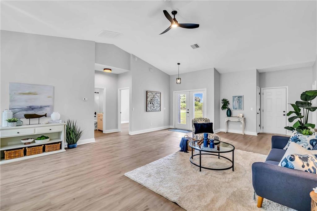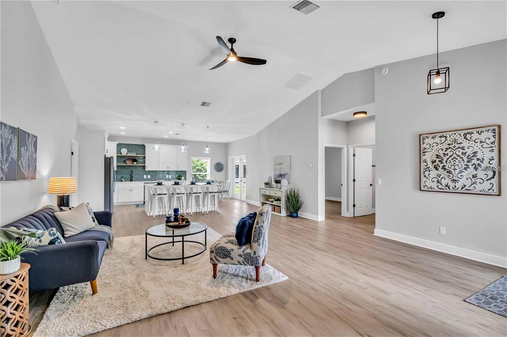 Split Bedroom Walk-In Closet(s) Vaulted Ceiling(s)Ceiling Fan(s) Eating Space In Kitchen High Ceilings Thermostat Open Floorplan Window Treatments Solid Surface Counters Primary Bedroom Main Floor Kitchen/Family Room ComboCathedral Ceiling(s)Equipment/Appliances: