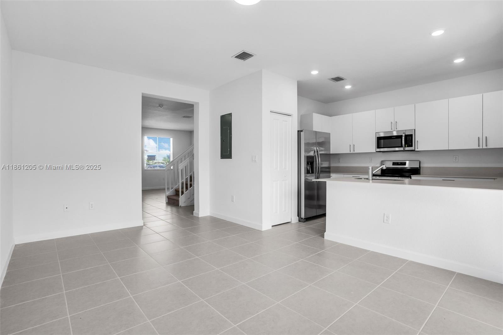 New construction two-story townhouse boasts three spacious bedrooms, two full bathrooms, and a half-bath. the open layout features a family room, dining area, and kitchen, along with a separate living room for additional relaxation and entertainment space. all bedrooms are conveniently located on the second floor. the kitchen is outfitted with stainless steel appliances, quartz countertops, and ample cabinet storage. a large, fenced patio provides the perfect spot for unwinding or hosting guests. ideally situated near schools, turnpike exit 2, shops, restaurants, a hospital, the amazon distribution center, and homestead air base.Townhouse 3 bedrooms - KEYS GATE SUBDIVISION for Rent